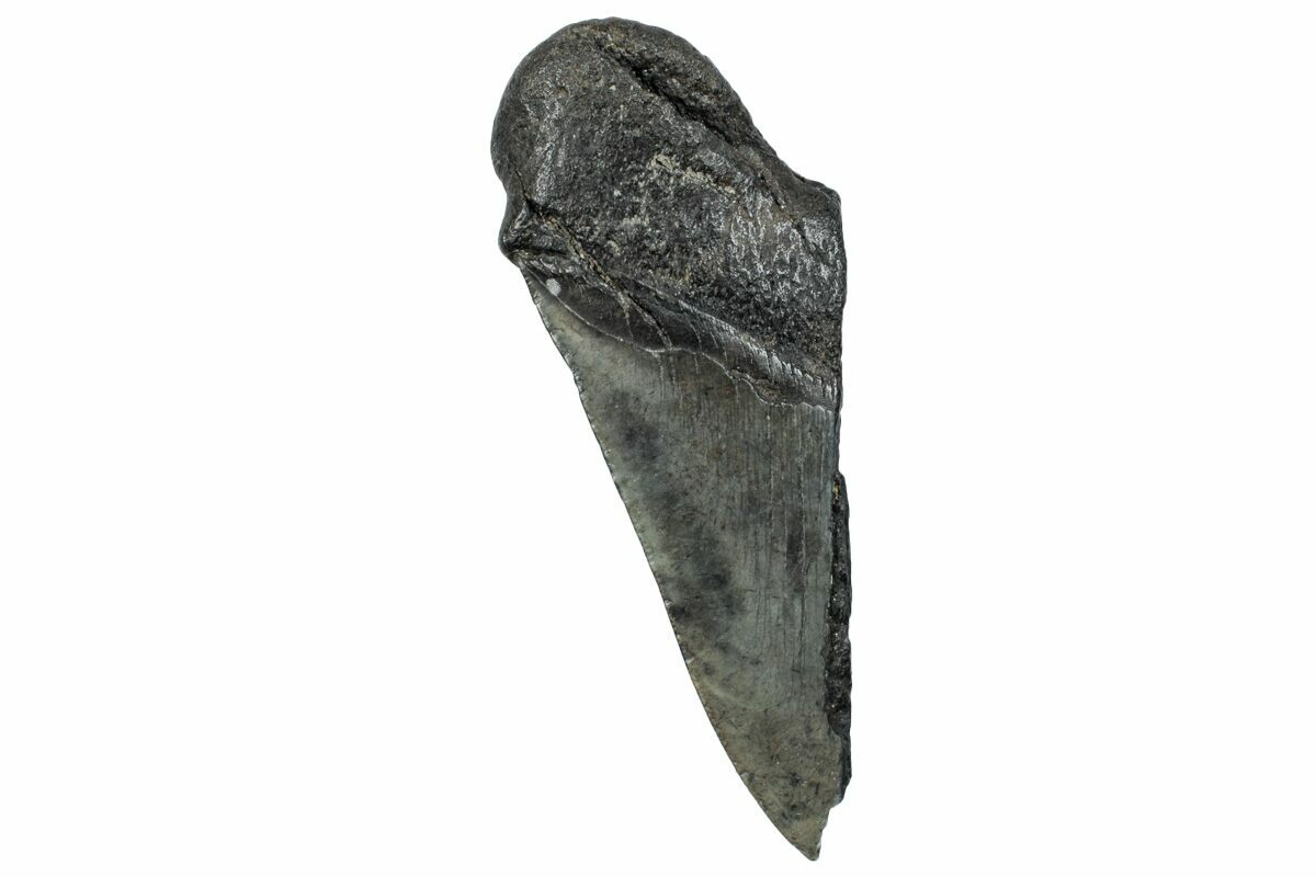 This is a half of a fossil Megalodon tooth collected from the Hawthorn Formation in South Carolina. Very often teeth are found broken down the middle and are much more common than finding complete unbroken teeth. The tooth would have come from an adult, prehistoric, mega-shark in the 35+ foot size range.