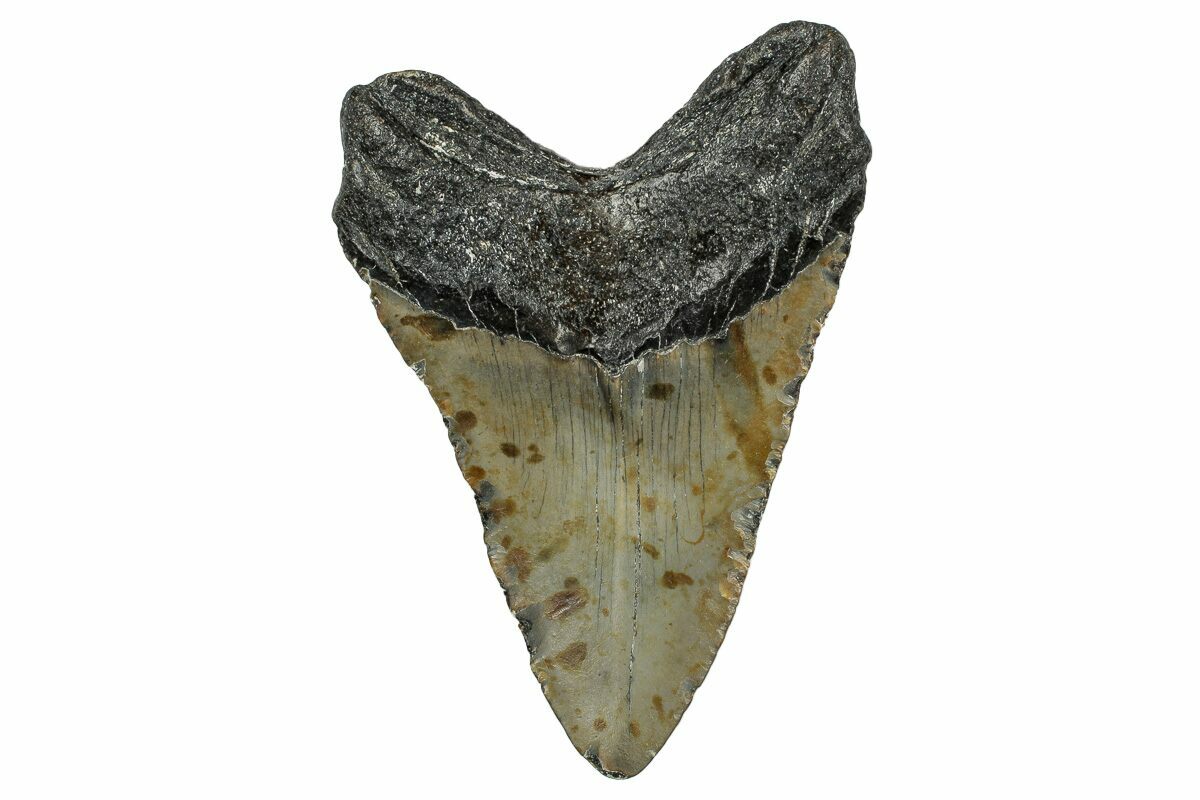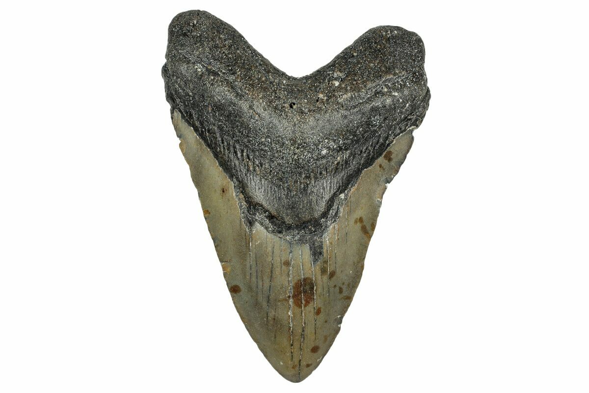 The standard measure for megalodon teeth is slant height, or the longest edge of the tooth. Adult megalodon teeth were typically in the 4 to 5 inch range: teeth over 6 inches are rare and represent super-sized individuals. Only a handful of teeth have ever been found over seven inches.