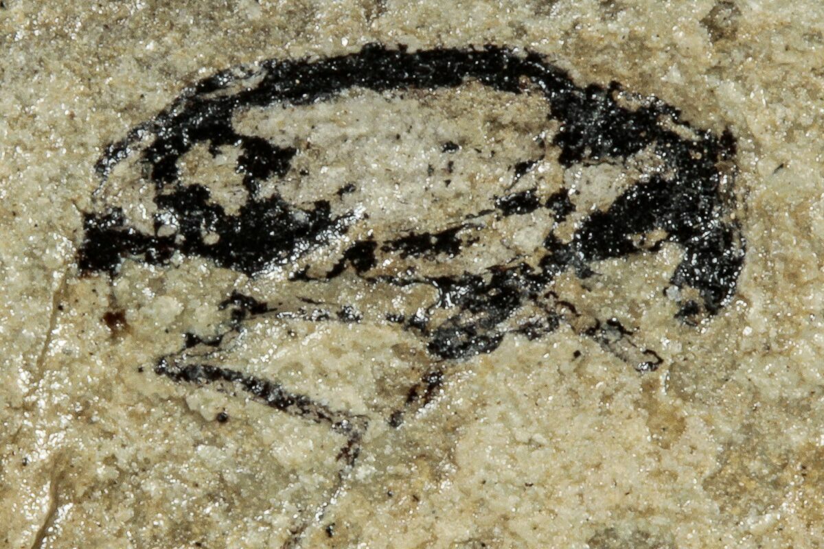 This is a fossil weevil (order Coleoptera) of the genus Hipporhinus, collected from an Oligocene-aged (Stampien/Rupelian) shale deposit at Mine de Gaude in Southern France. The beetle has been covered by a thin sealant to highlight its detail.