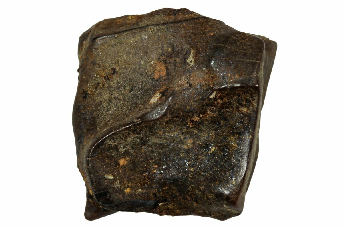 This specimen is one of those naturally shed teeth and features a polished chewing surface, showing clear evidence of the wear that came from processing vegetation millions of years ago.