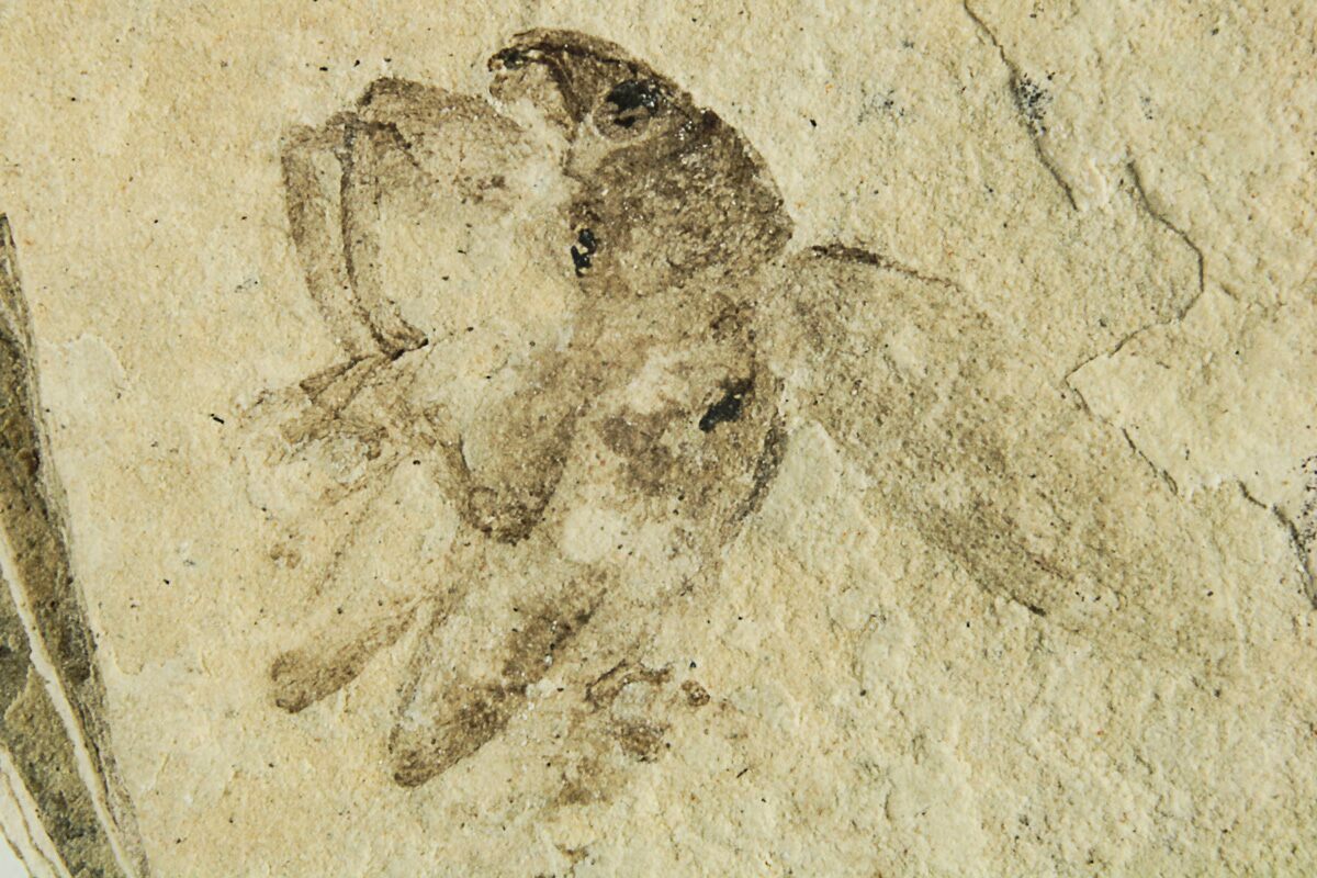 This is part of an old collection that we recently acquired. The collection includes a variety of insect fossils from around Southern France, collected over a span of 50 years by a woman with PhDs in paleontology and pharmacology.