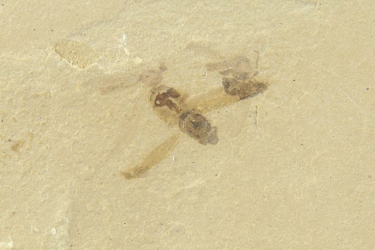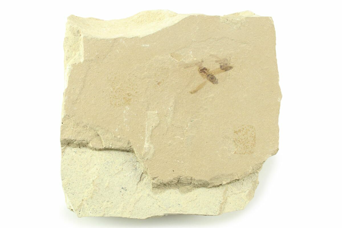 This is a .45" wide (wingspan) detailed fossil fly (order Diptera), collected from the Green River Formation of Utah. While the Green River Formation is best know for its fish fossils, other areas produce incredible plant fossils and insect fauna.