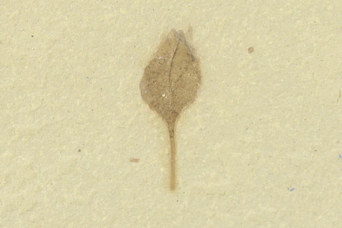 This is a well preserved .45" long (including stem) fossil capsular fruit from the Green River Formation of Uintah County, Utah. While this formation is best known for well preserved fossil fish found in Wyoming, other sections of the formation contain a very diverse flora and insect fauna.