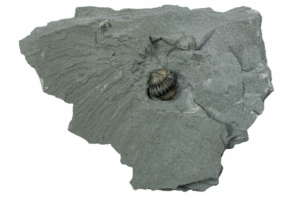 Flexicalymene is often found enrolled, seemingly to protect its softer underside from threats on a sea floor teeming with ancient life and increasingly complex predators. Sealing itself inside the hard carapace may be a protective maneuver, or it may simply be the pose of death.