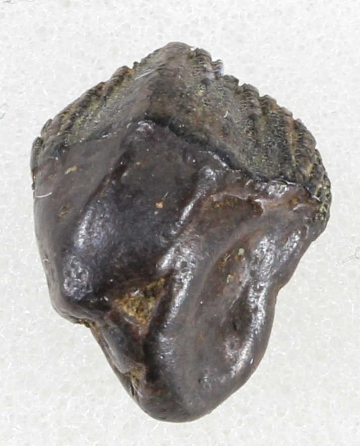 This is a unworn crown of a Triceratops tooth. It was collected from the Hell Creek Formation in Carter County, Montana. Triceratops is one of the most iconic dinosaurs, recognizable by almost everyone. The vast majority of teeth found are worn teeth that are discarded during the dinosaurs lifetime. The tooth is unworn making it a much more uncommon find.