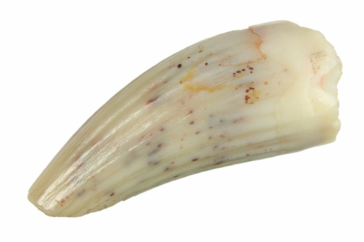 What we have for you is a .48" long tooth from a Triassic amphibian, likely from Apachesaurus gregorii. This tooth is from Triassic Chinle Formation that extends from Arizona to Texas. It is excellently preserved with minimal feeding wear on the tip, spectacular enamel preservation, and characteristic deep grooves. It comes with an acrylic display case.