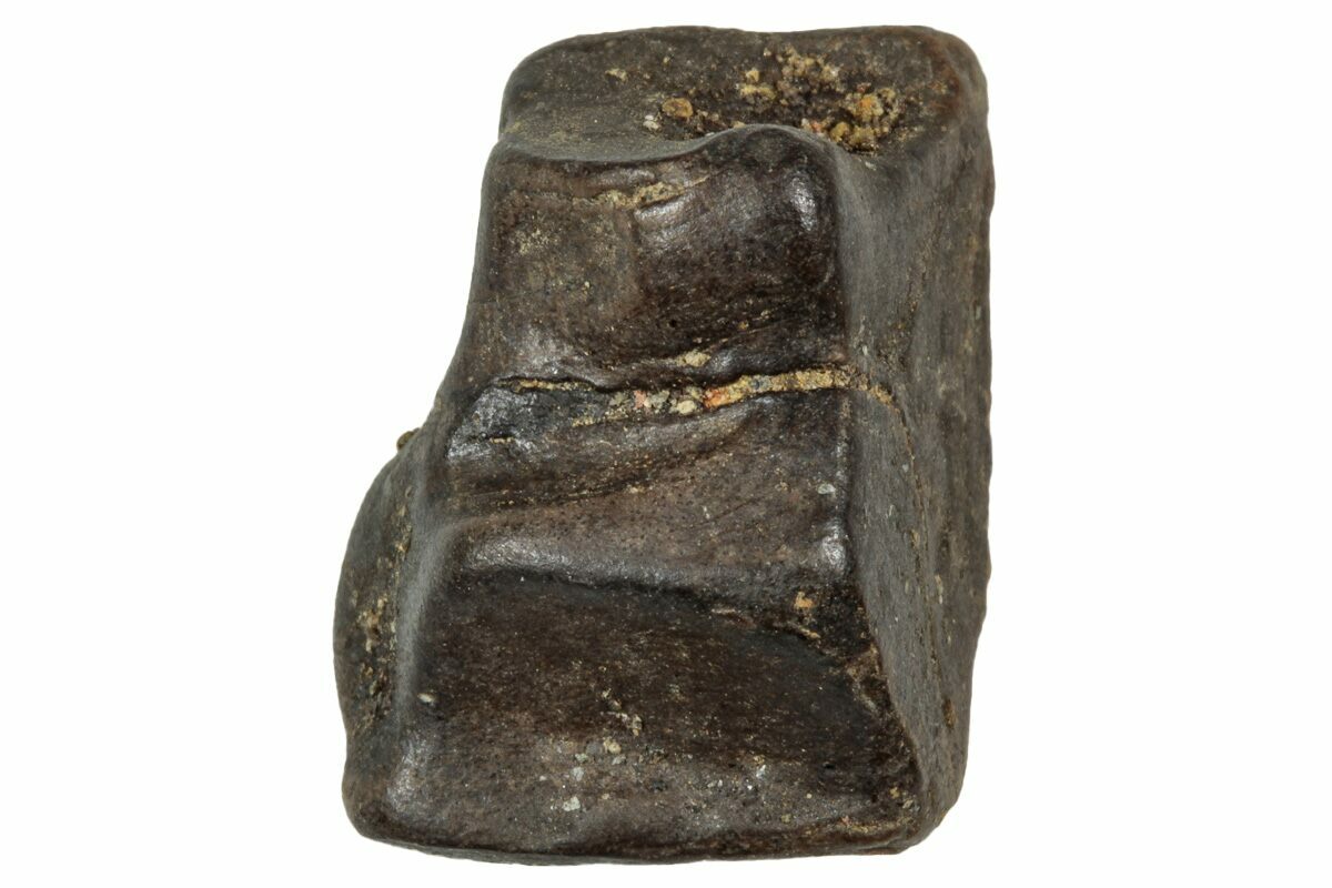 This specimen is one of those naturally shed teeth and features a polished chewing surface, showing clear evidence of the wear that came from processing vegetation millions of years ago.
