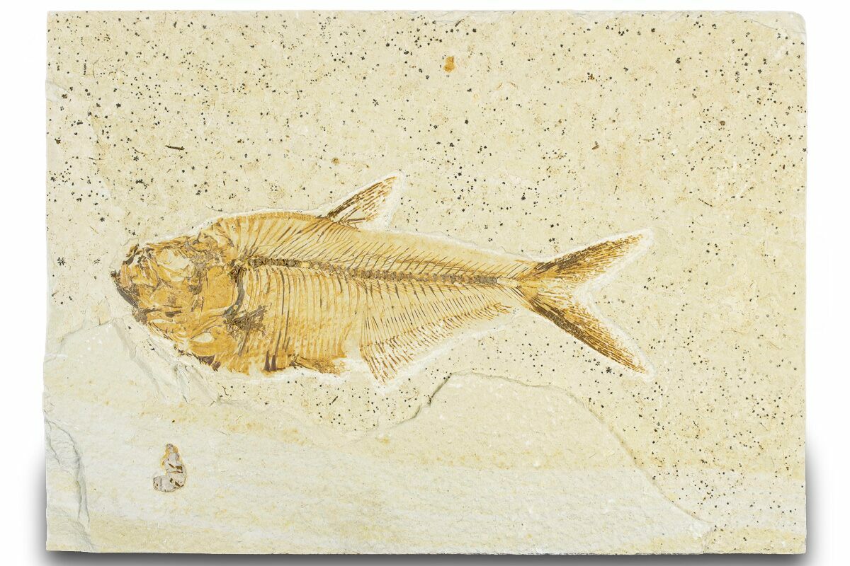 Today the wonderfully preserved fossils of Diplomystus and other Fossil Lake fauna are collected in several private quarries around Kemmerer, Wyoming. The best preserved fish fossils come from the coveted 18 Inch Layer. This layer is collected at night under high-powered lights, enhancing the faint signs of fish under the surface indicating underlying fossils. These “ghosted” fish then must go through many hours of manual preparation to remove the overlying rock and reveal the Green River fauna in all of its glory.