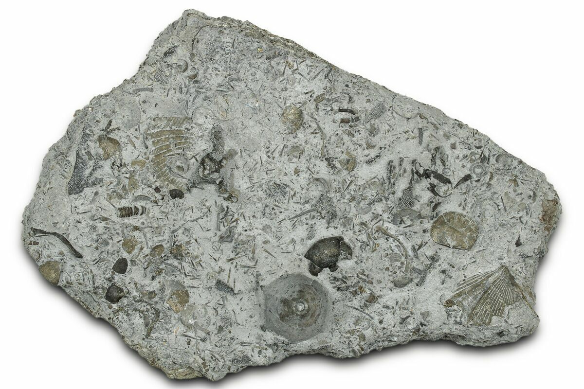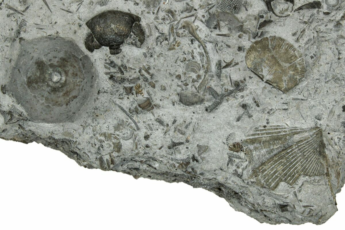 The Silica Shale near the Ohio-Michigan border by Toledo, OH, contains a spectacular array of fauna. This includes 40 cnidarian species, 40 species of bryozoans, 63 species of brachiopods, 21 species of bivalves, 19 species of crinoids, and many, many other organisms. This open marine depositional setting is contiguous with seas in New York and Ontario.