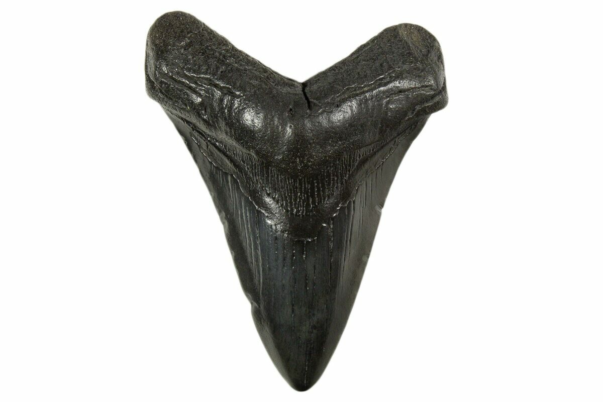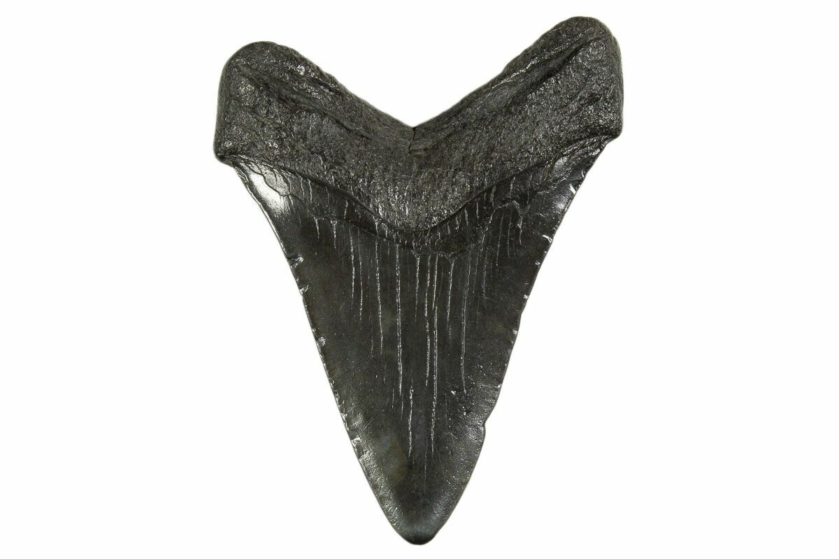 The standard measure for megalodon teeth is slant height, or the longest edge of the tooth. Adult megalodon teeth were typically in the 4 to 5 inch range: teeth over 6 inches are rare and represent super-sized individuals. Only a handful of teeth have ever been found over seven inches.