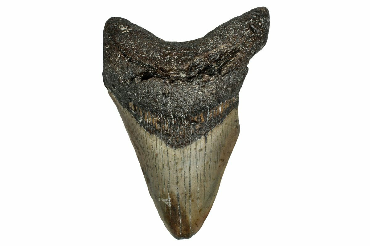 Megalodon had a cosmopolitan (global) distribution and its giant teeth can be found in deposits throughout the world. Some are collected on land in phosphate deposits, while many are collected from rivers and coastlines after eroding out of the rocks. This contributes to the water-worn, polished appearance of many teeth.