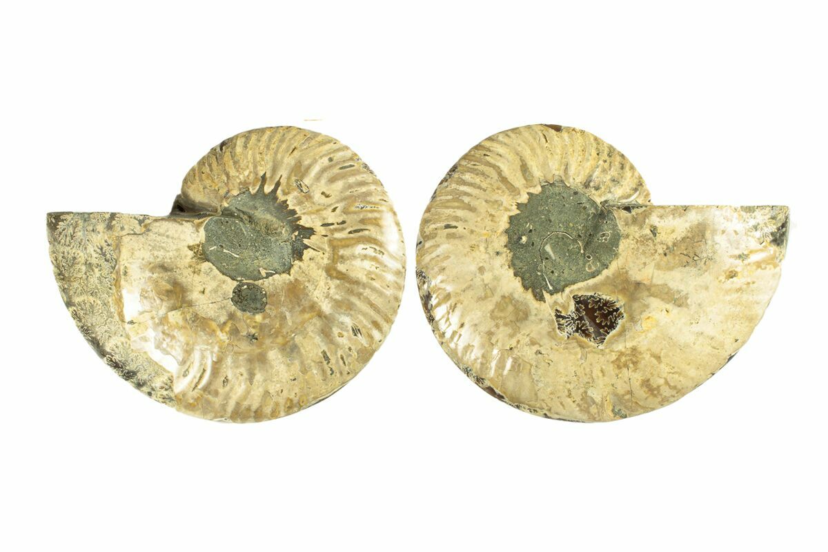 It exhibits gorgeous mineralization within the chambers, each separated by white calcite septa (divisions). This highly polished, exotic ammonite makes a superb display piece with tremendous historical appeal.