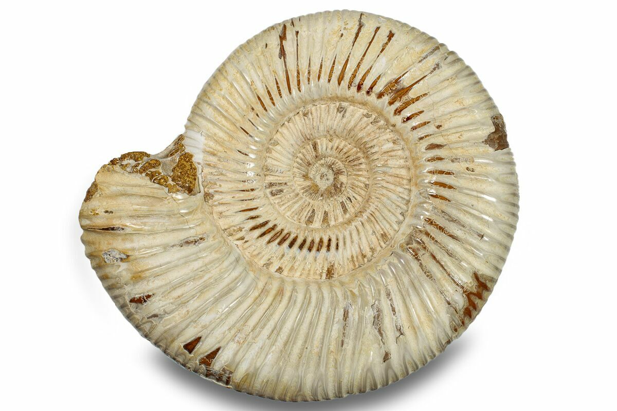 Ammonites were ancient marine cephalopods, similar to today's squids and octopuses, but with a defining feature: their distinctive, tightly coiled spiral shells. These shells, resembling those of modern nautiluses, served as both a protective home and a buoyancy aid, allowing ammonites to navigate the prehistoric seas with ease. First emerging around 240 million years ago in the Triassic Period, ammonites thrived for over 175 million years, adapting through numerous forms and sizes. As predatory creatures, they likely fed on smaller marine organisms, using their tentacles to capture prey. However, their long reign came to an end 65 million years ago at the close of the Cretaceous, coinciding with the mass extinction event that also eliminated the dinosaurs.