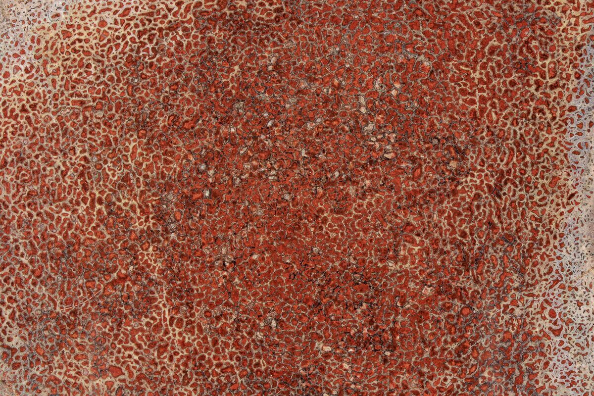 Dinosaur gembone (agatized dinosaur bone) forms when the porous structure of dinosaur bone is replaced by silica-rich minerals like agate, chalcedony, or jasper. This preserves the bone’s internal cell patterns, creating striking, web-like textures visible when polished.