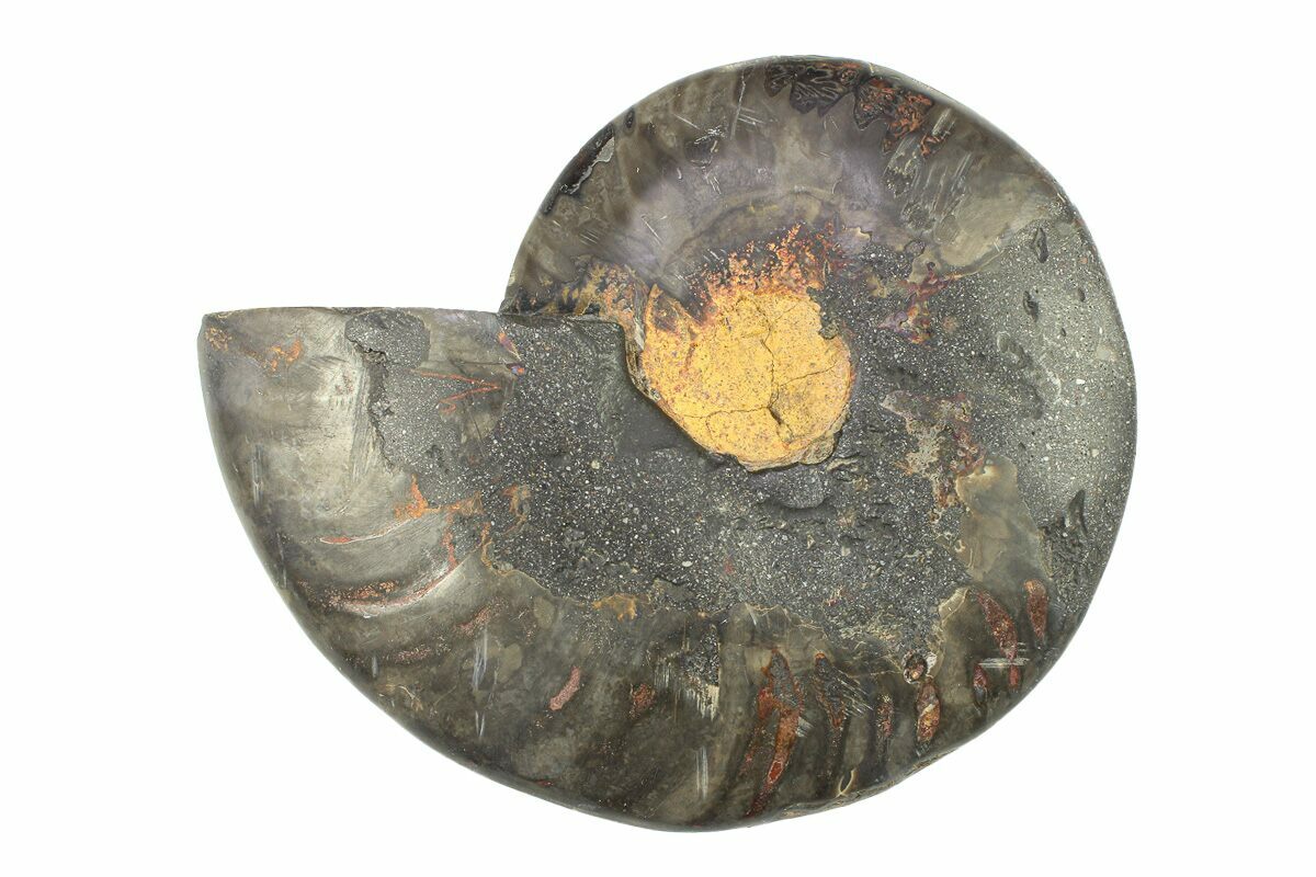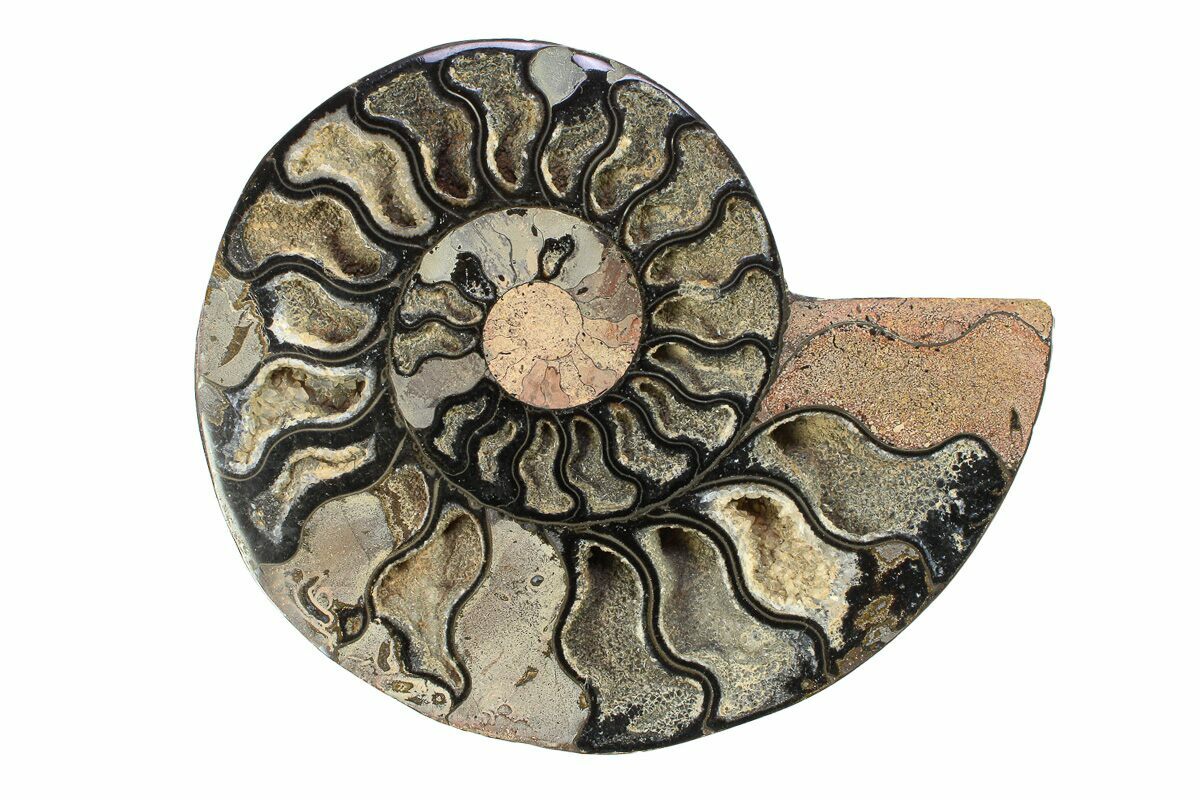 5.3" Cut & Polished Ammonite Fossil (Half) - Unusual Black Color