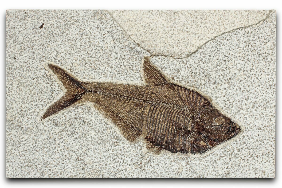 Today the wonderfully preserved fossils of Diplomystus and other Fossil Lake fauna are collected in several private quarries around Kemmerer, Wyoming. The best preserved fish fossils come from the coveted 18 Inch Layer. This layer is collected at night under high-powered lights, enhancing the faint signs of fish under the surface indicating underlying fossils. These “ghosted” fish then must go through many hours of manual preparation to remove the overlying rock and reveal the Green River fauna in all of its glory.