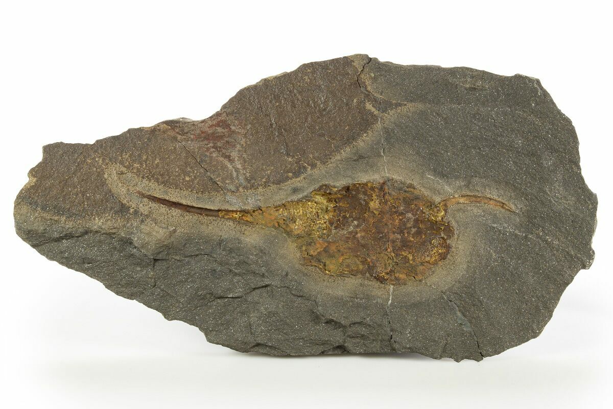 This is a large, 5.3" long fossil Carpoid from the Ktaoua Formation of Morocco. It nicely detailed with excellent preservation.
