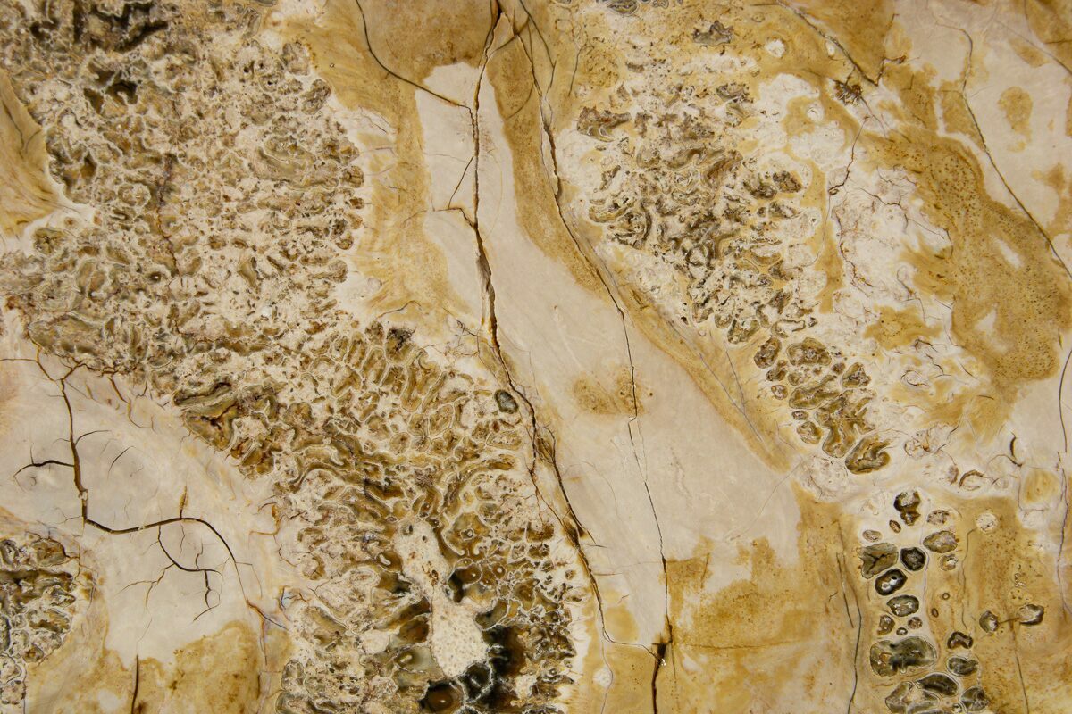 This is a 5.3" wide slice of a Columbia mammoth (Mammuthus columbi) molar collected from the coastal region of South Carolina. It has been sliced and highly polished to a glossy-finish on both sides. Really an interesting piece. There is one repaired crack through the middle of this slice.