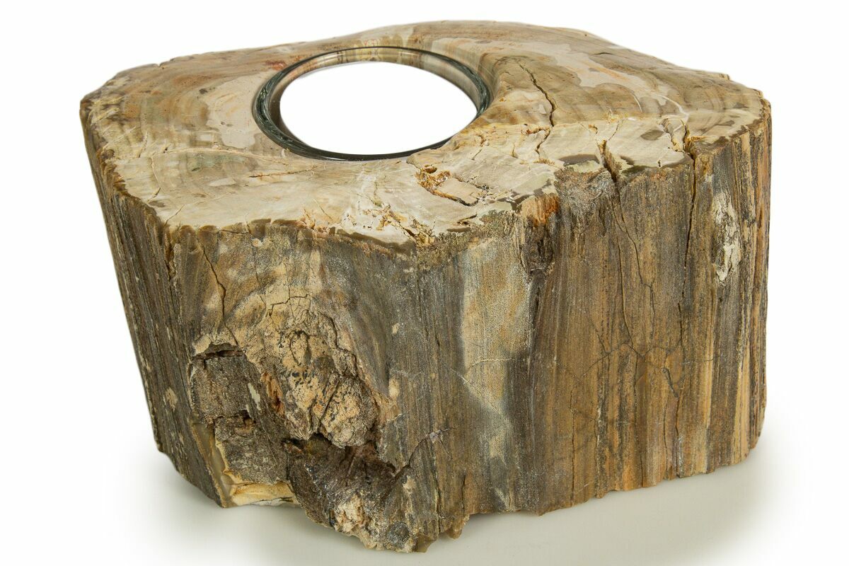 5.3" Polished Petrified Wood Candle Holder - Madagascar