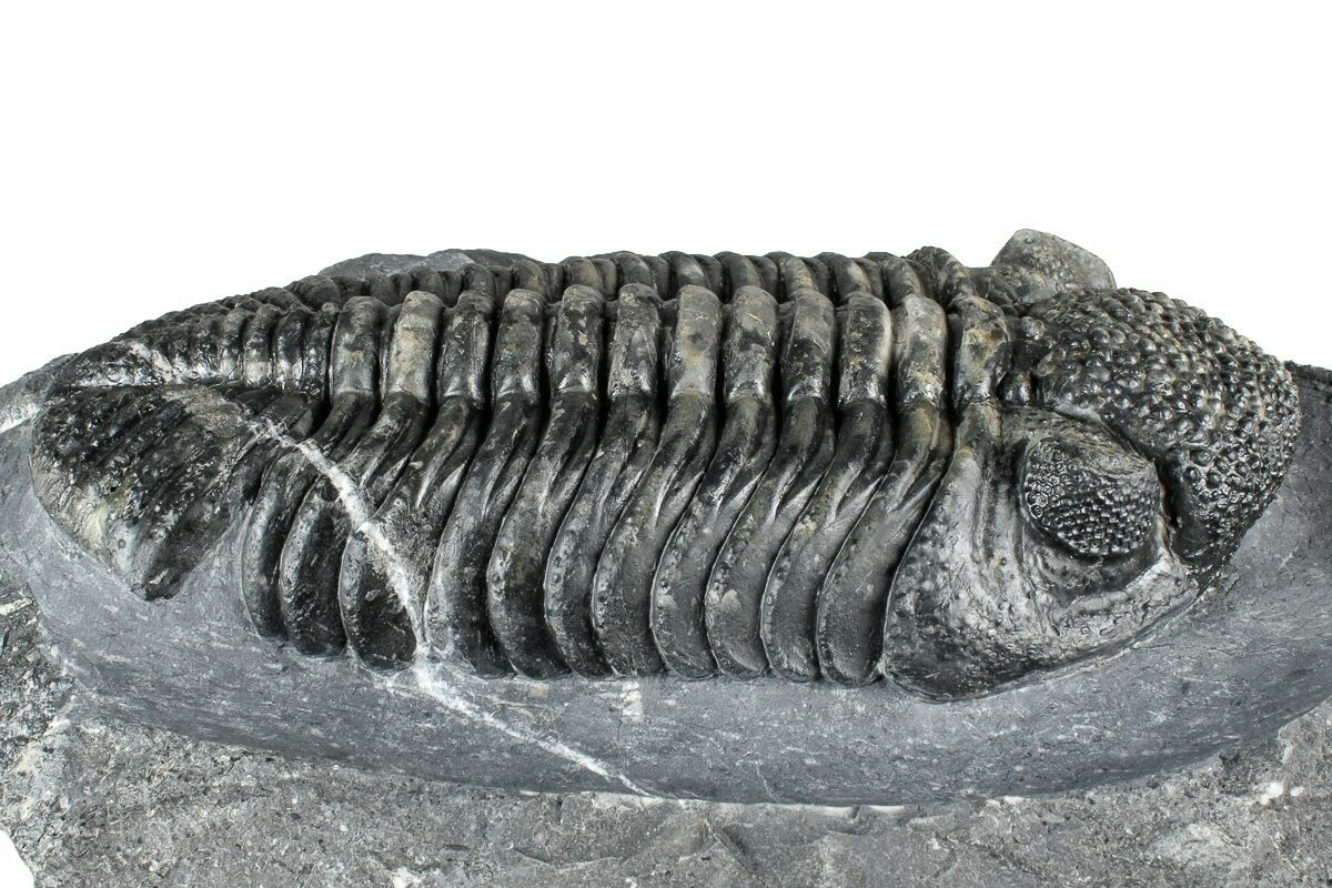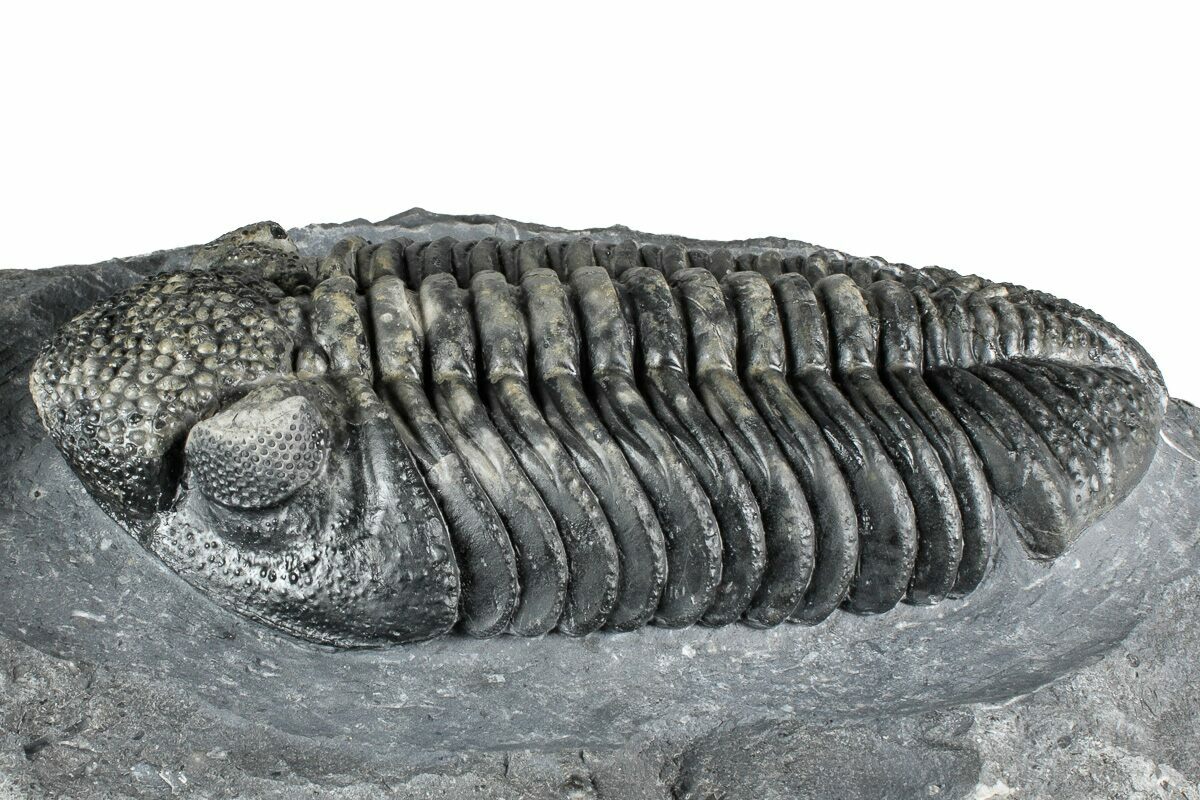 One of the most striking features of Drotops trilobites is their highly detailed schizochroal eyes, which contain dozens of individual facets. In well-preserved and expertly prepared specimens, these intricate eye structures are prominently visible, offering a glimpse into the advanced visual adaptations of these ancient arthropods.