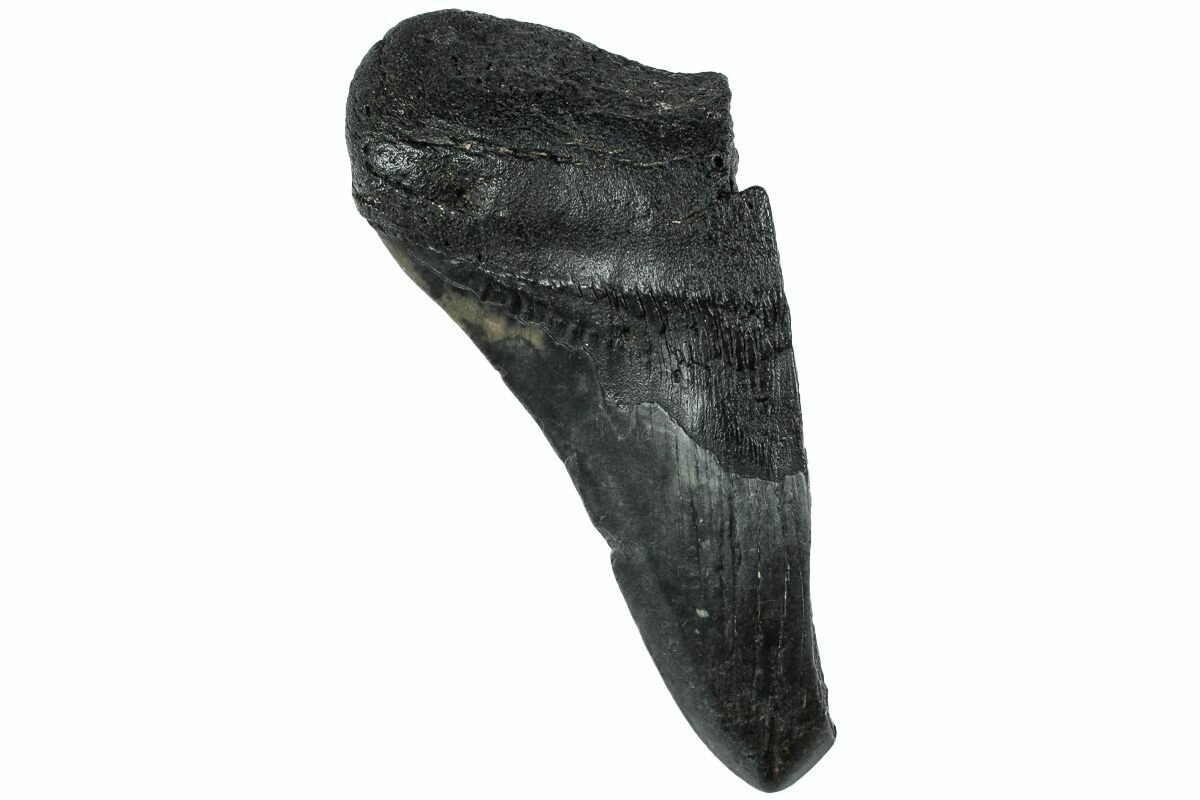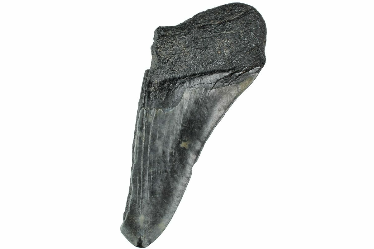 The standard measure for megalodon teeth is slant height, or the longest edge of the tooth. Adult megalodon teeth were typically in the 4 to 5 inch range: teeth over 6 inches are rare and represent super-sized individuals. Only a handful of teeth have ever been found over seven inches.