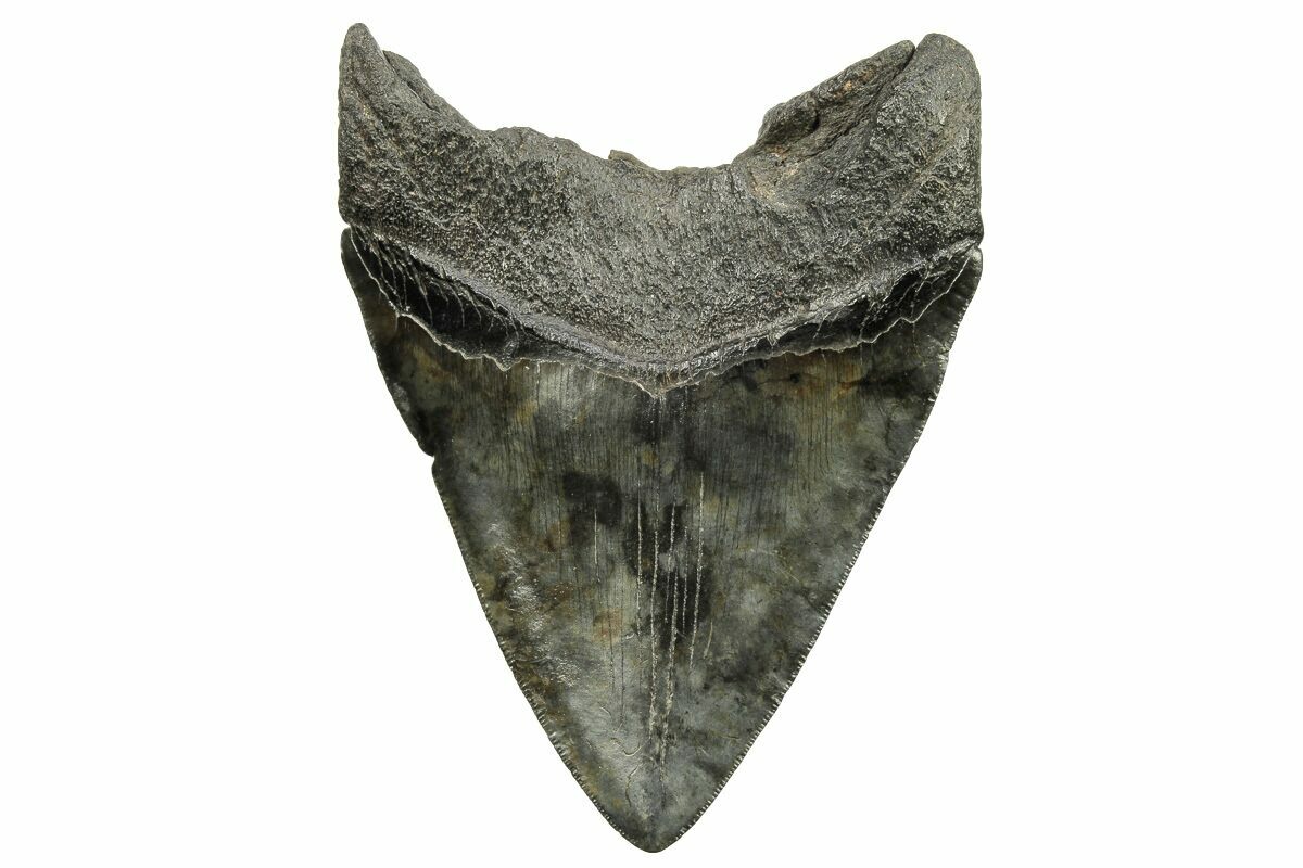 Megalodon had a cosmopolitan (global) distribution and its giant teeth can be found in deposits throughout the world. Some are collected on land in phosphate deposits, while many are collected from rivers and coastlines after eroding out of the rocks. This contributes to the water-worn, polished appearance of many teeth.