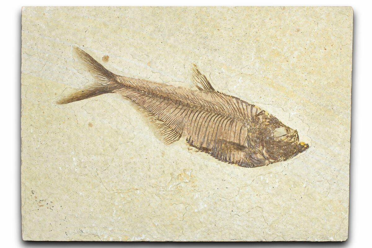 This is a detailed, 5.35" long fossil fish (Diplomystus dentatus) from the famous Green River Formation. It comes from our own Fossil Lake Safari quarry just outside of Kemmerer, Wyoming.