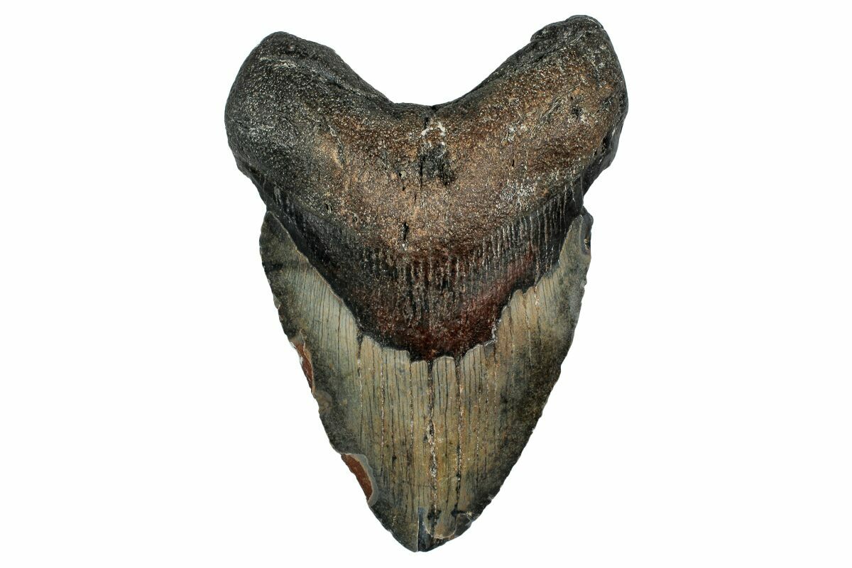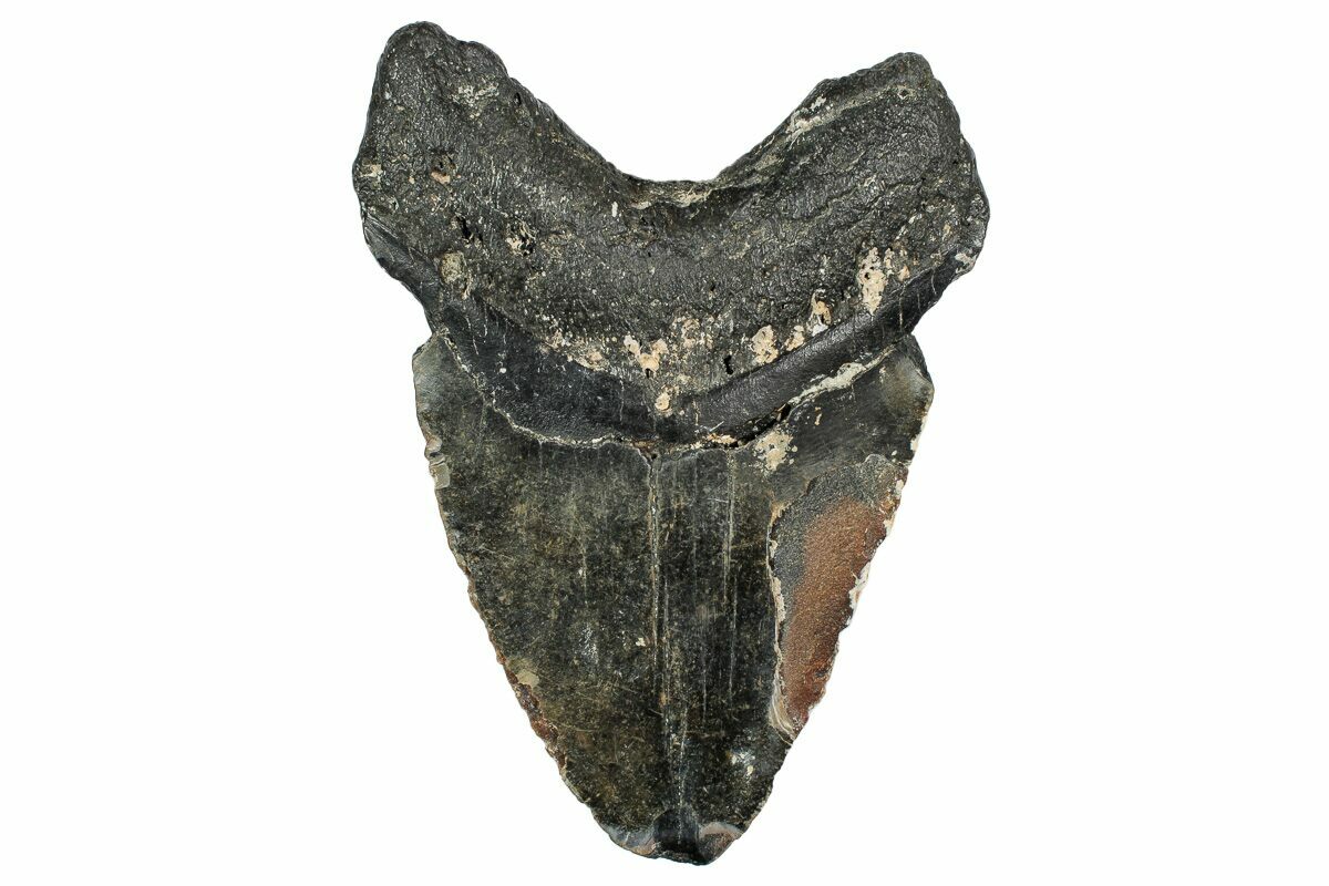 Megalodon had a cosmopolitan (global) distribution and its giant teeth can be found in deposits throughout the world. Some are collected on land in phosphate deposits, while many are collected from rivers and coastlines after eroding out of the rocks. This contributes to the water-worn, polished appearance of many teeth.