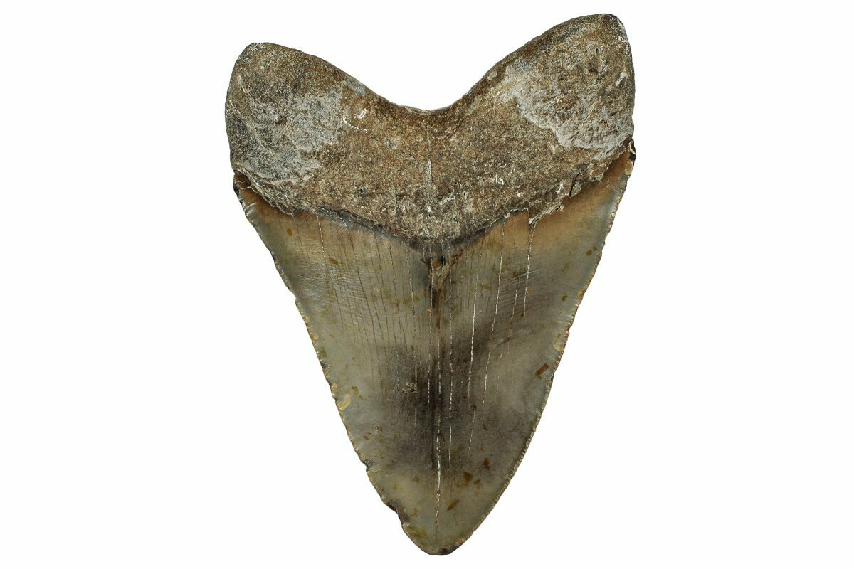 Megalodon had a cosmopolitan (global) distribution and its giant teeth can be found in deposits throughout the world. Some are collected on land in phosphate deposits, while many are collected from rivers and coastlines after eroding out of the rocks. This contributes to the water-worn, polished appearance of many teeth.