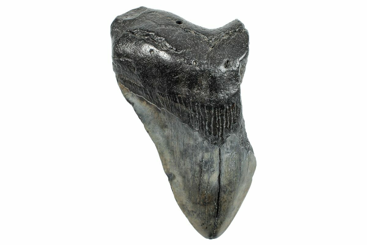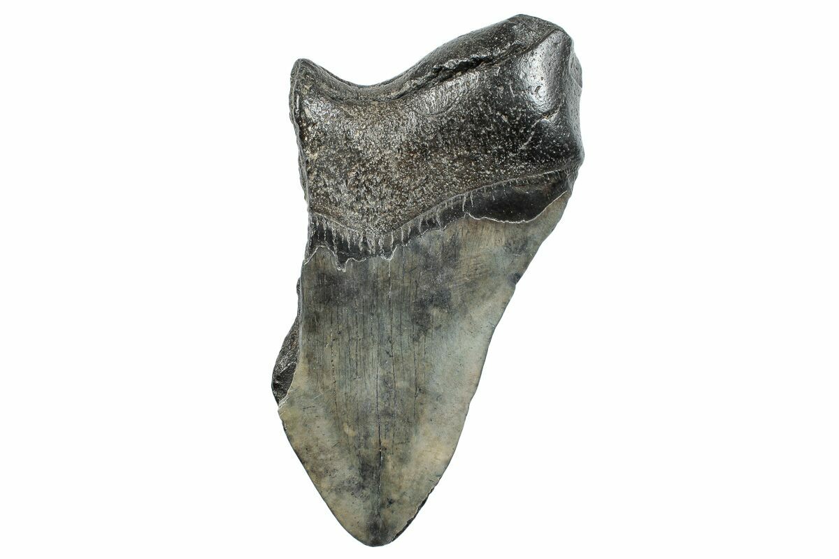 This is a partial, 5.37 fossil megalodon tooth collected from the Hawthorn Formation in South Carolina. Given the size of this tooth, it would have come from a prehistoric, mega-shark in the 40+ foot size range.