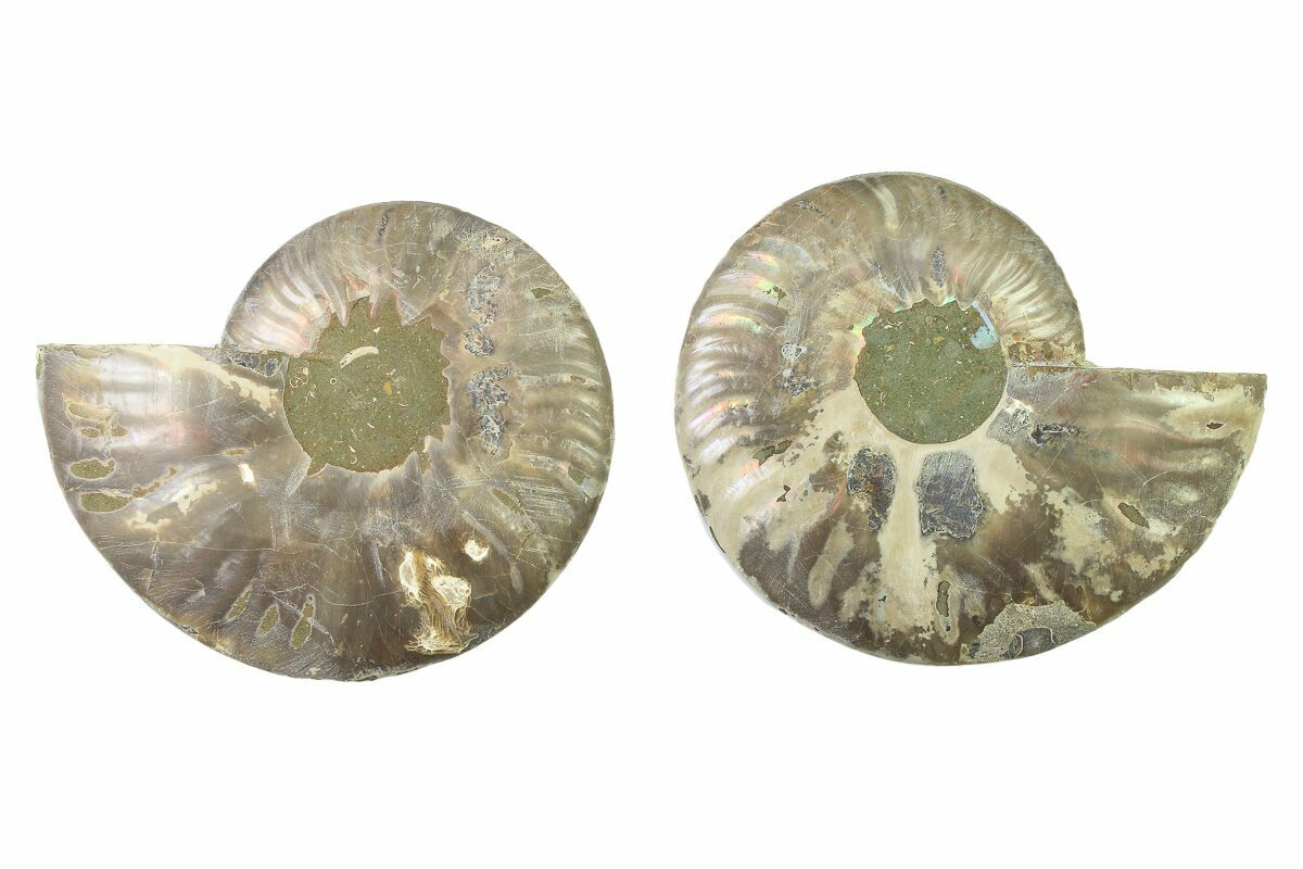 Both halves are included along with a pair of display stands. The center of the ammonite is a composite from another specimen.