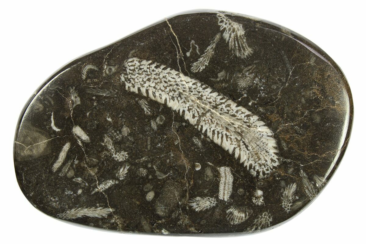 5.4" Polished Devonian Fossil Coral and Bryozoan Plate - Morocco