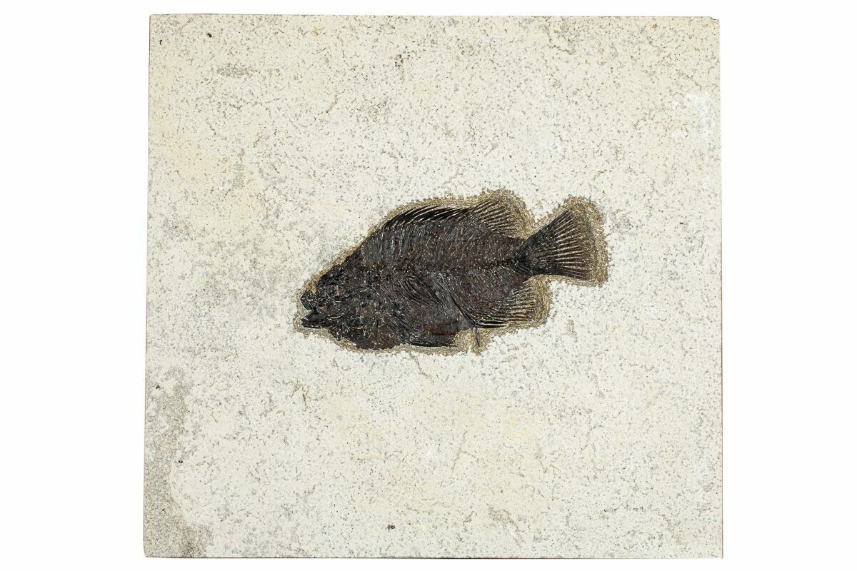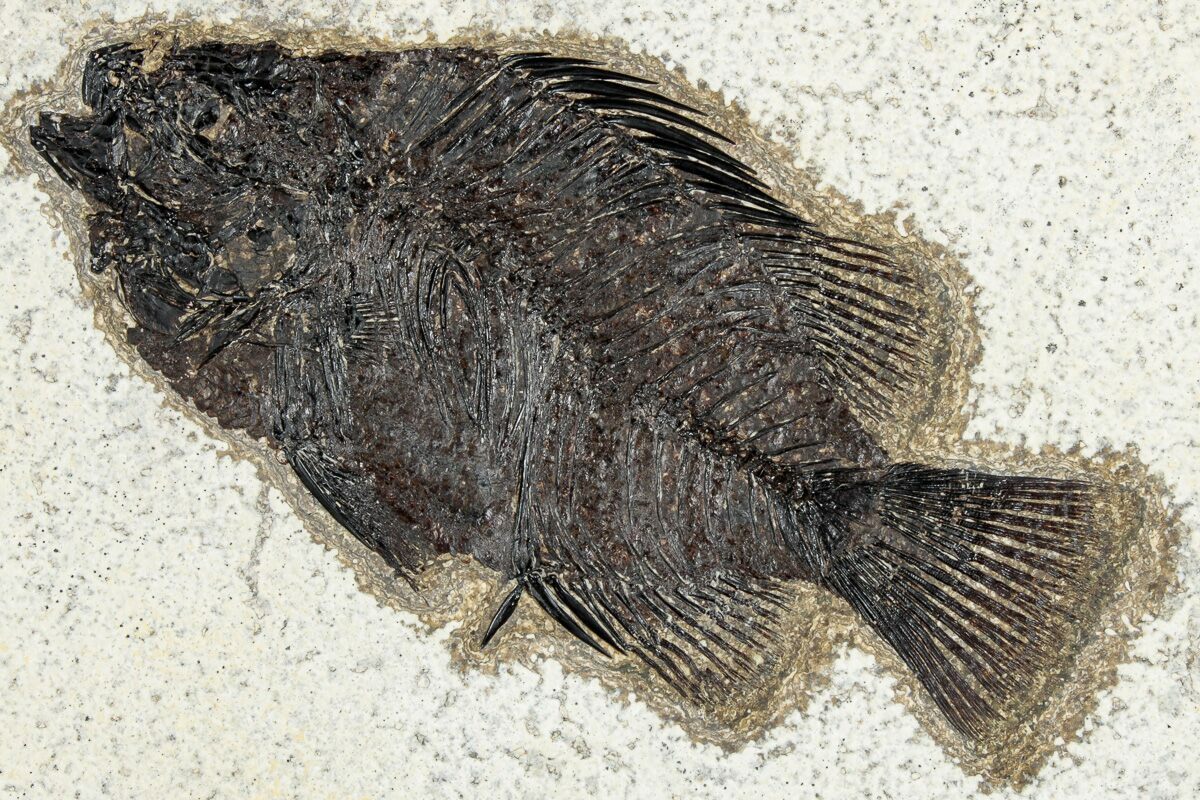 Specimens like this come from the coveted 18 inch layer of the Green River Formation, which produces darker and more detailed fish than the majority on the market. The rock from this layer is much harder and more durable than other layers in the formation, likely due to its initial deposition conditions in deep water. Because of these conditions, fish found in the 18-inch layer can be extracted whole and in excellent condition. This layer is typically collected at night using low-angle light to see the bump in the rock that the fish's backbone creates. They then cut these fish out and take them to a lab where the fish, which may be up to an inch under the surface of the rock, are meticulously extracted under microscope with hand tools.