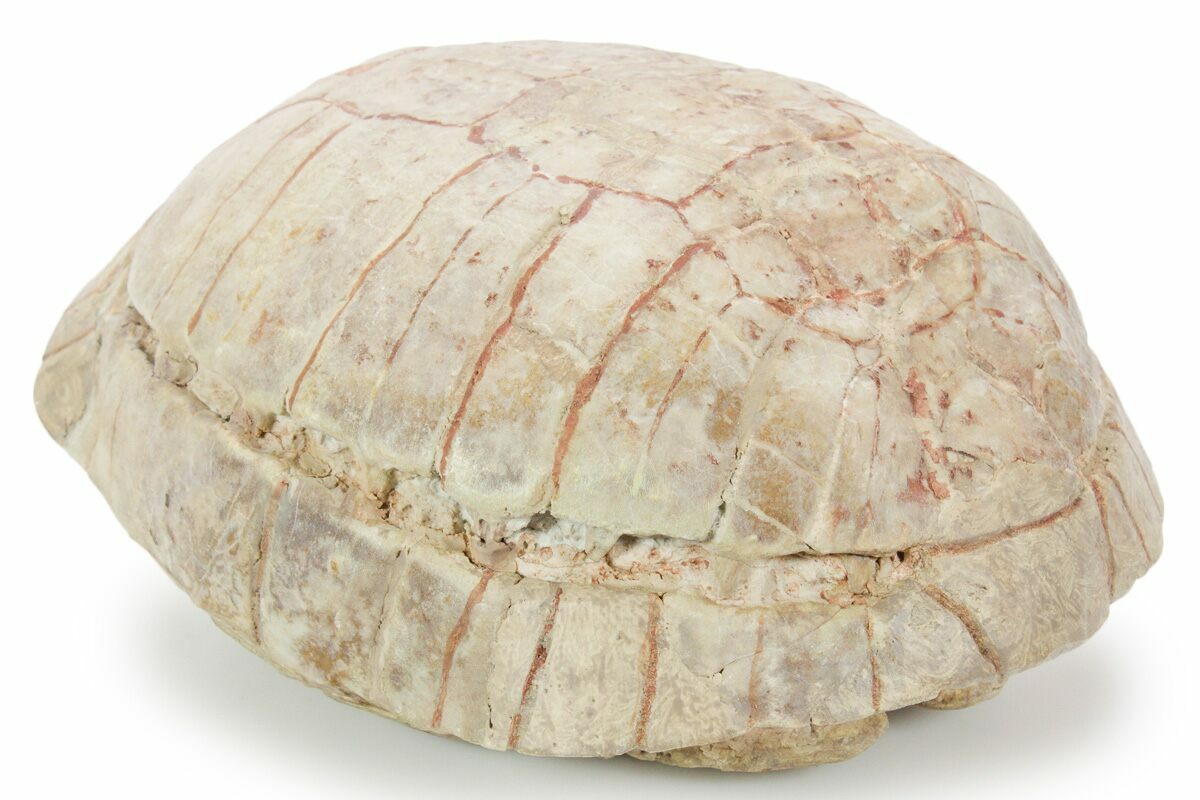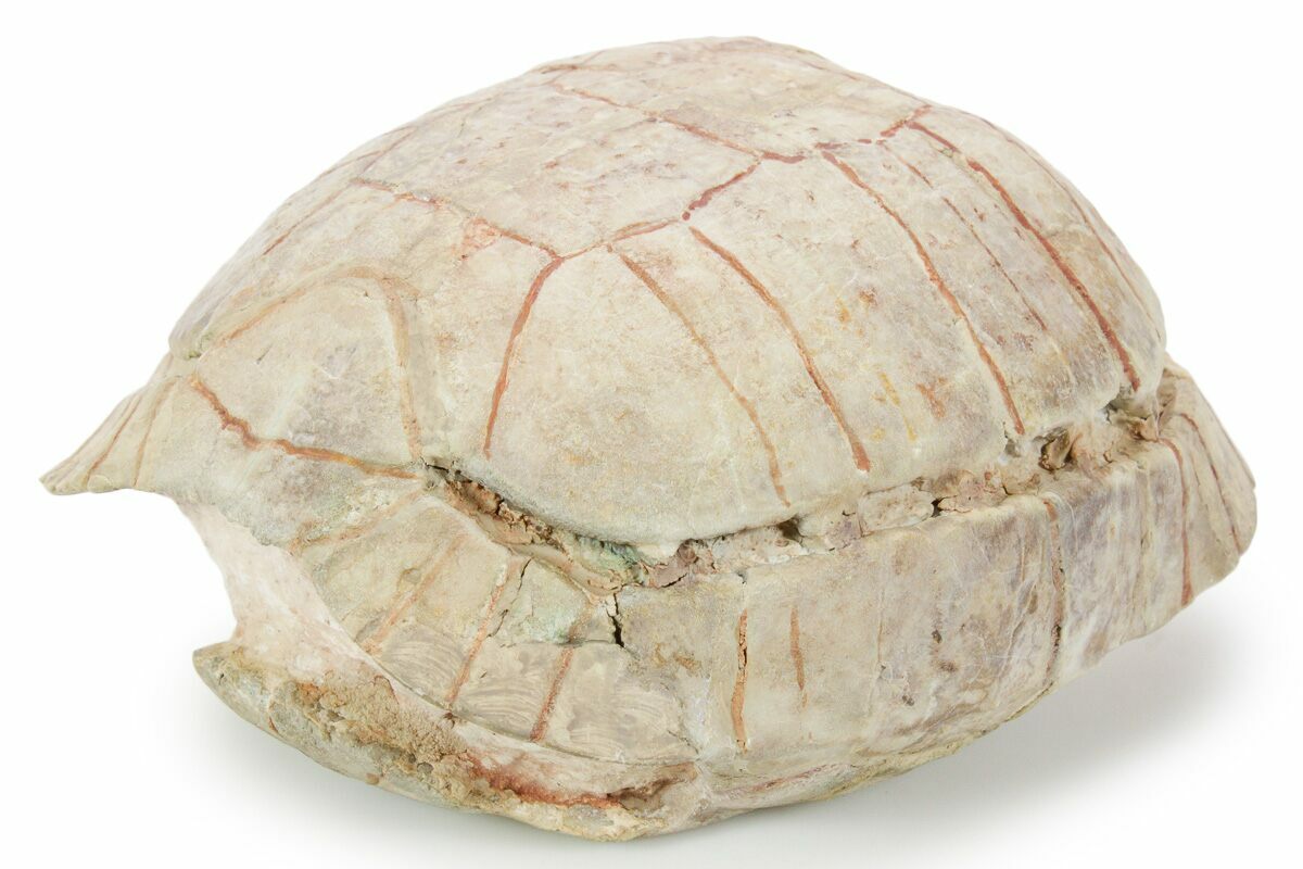 There is about 3% restoration to the plastron and 6% restoration to the carapace. Restoration is primarily in the form of gap fill along repaired cracks, though a few of the marginal scutes have been completely restored. While red lines along sutures can appear naturally during preservation, these have been painted on to highlight the separation of the scutes.