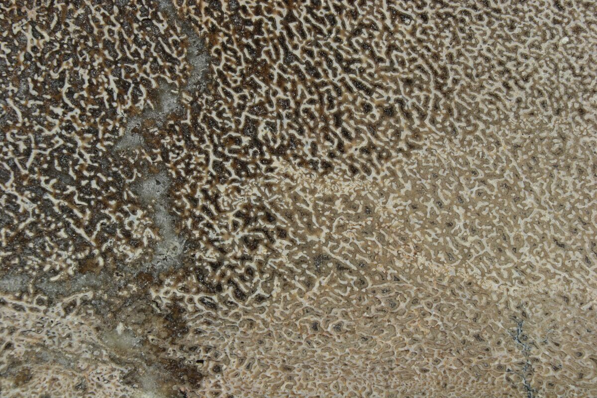Agatized bone, sometimes referred to as "gembone", is fossilized dinosaur bone in which the original fossil material has been replaced by silica. The impurities within the silica are what give the bone color. Interestingly, this silica replacement often happens at a sub-cellular level leaving the internal structures intact.