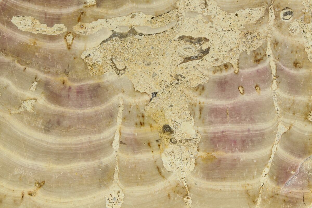One very interesting aspect of this fossil is recent studies have shown that the reddish hue is likely to have been the same tone as the original coloration of the animal. The coloration comes from natural pigments suffused by the element boron. The same study concluded the banding on these fossils is due to seasonal growth. A link to the paper originally published in the Proceedings of the National Academy of Sciences can be found below.