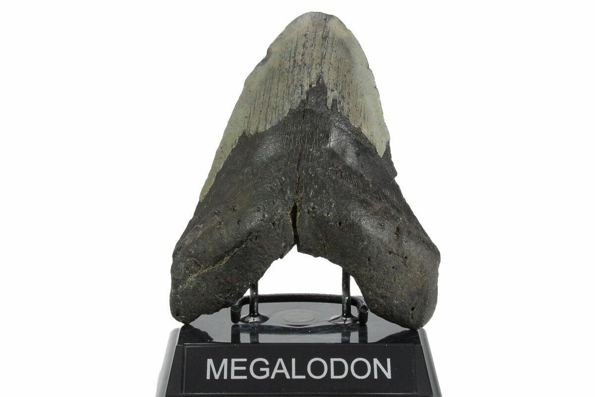 The standard measure for megalodon teeth is slant height, or the longest edge of the tooth. Adult megalodon teeth were typically in the 4 to 5 inch range: teeth over 6 inches are rare and represent super-sized individuals. Only a handful of teeth have ever been found over seven inches.