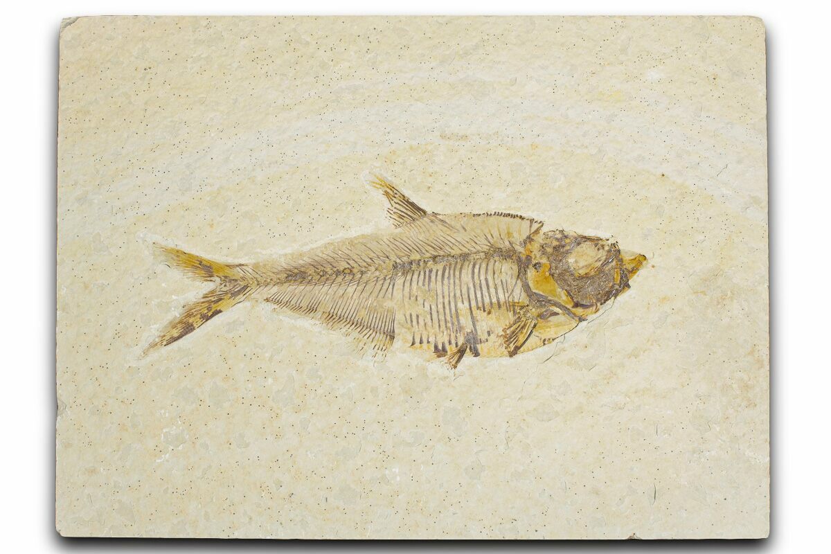 Today the wonderfully preserved fossils of Diplomystus and other Fossil Lake fauna are collected in several private quarries around Kemmerer, Wyoming. The best preserved fish fossils come from the coveted 18 Inch Layer. This layer is collected at night under high-powered lights, enhancing the faint signs of fish under the surface indicating underlying fossils. These “ghosted” fish then must go through many hours of manual preparation to remove the overlying rock and reveal the Green River fauna in all of its glory.