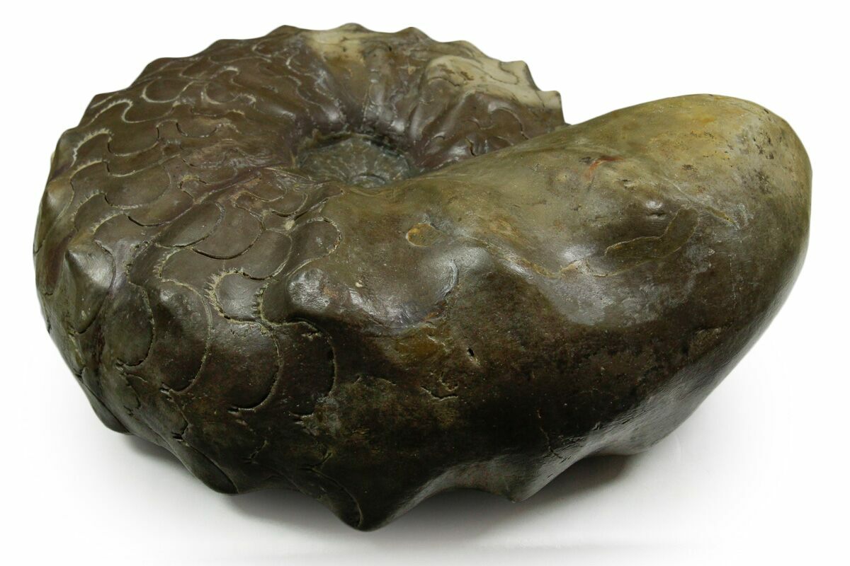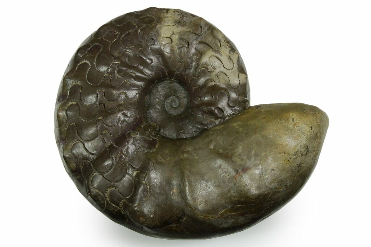 This is a 5.6" wide Middle Triassic aged ammonite (Ceratites nodosus). It comes from the the Muschelkalk Formation in Germany. It was found inside of a hard concretion which has been entirely removed from the ammonite.
