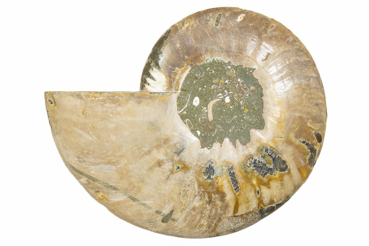 5.7" Cut & Polished Ammonite Fossil (Half) - Deep Crystal Pockets
