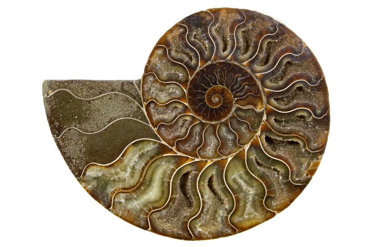 5.7" Cut & Polished Ammonite Fossil (Half) - Deep Crystal Pockets