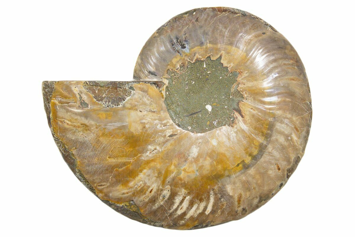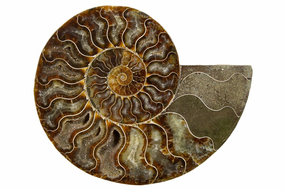5.7" Cut & Polished Ammonite Fossil (Half) - Deep Crystal Pockets