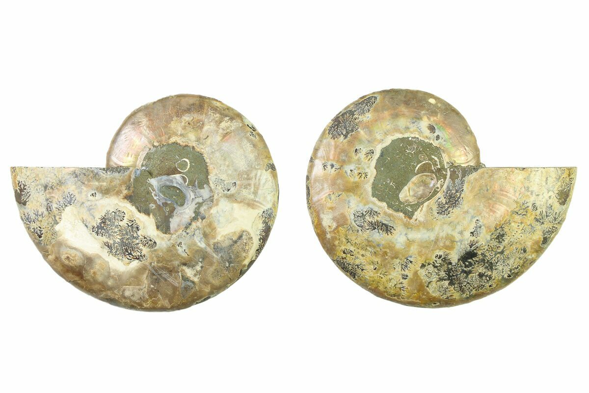 Both halves are included along with a pair of display stands. The center of the ammonite is a composite from another specimen.