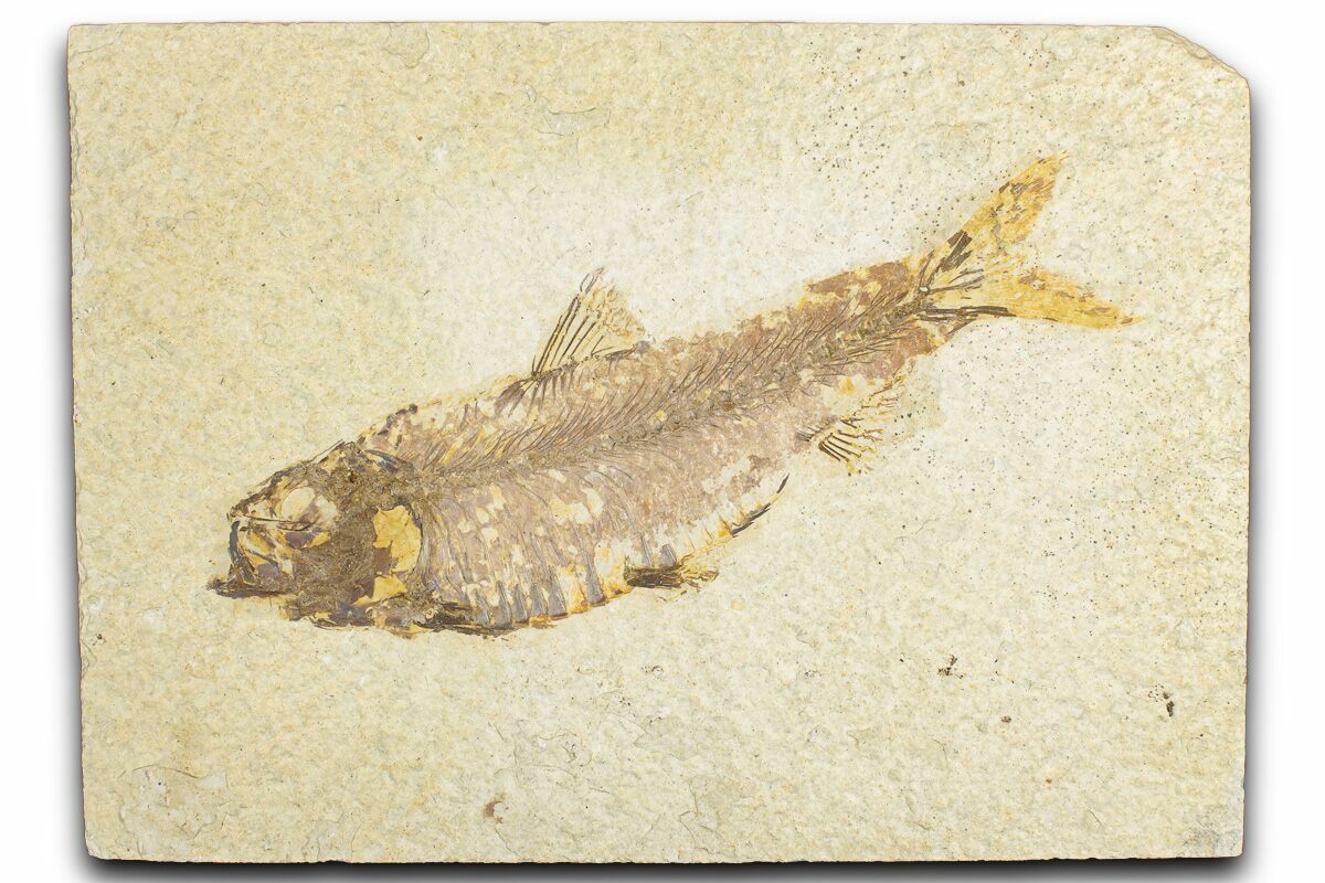 This is a detailed, 5.7" long fossil fish (Knightia eocaena) from our Fossil Lake Safari quarry near Kemmerer, Wyoming. It's quite large for the species, particularly coming from our quarry.