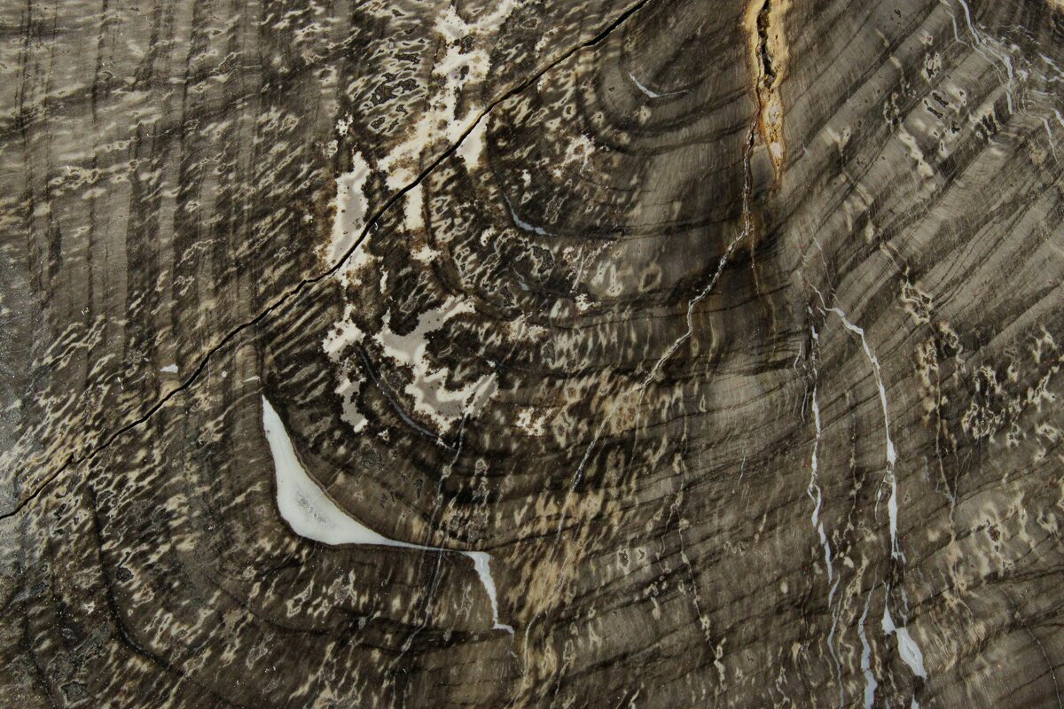 This is a beautiful polished slab of Devonian-aged petrified wood (Callixylon whiteanum) collected from Oklahoma. Callixylon is one of the oldest “true” petrified woods and probably formed the first forests of large vascular plants. The excellent polishing job along both faces allows for the very detailed interior wood structure to be seen.