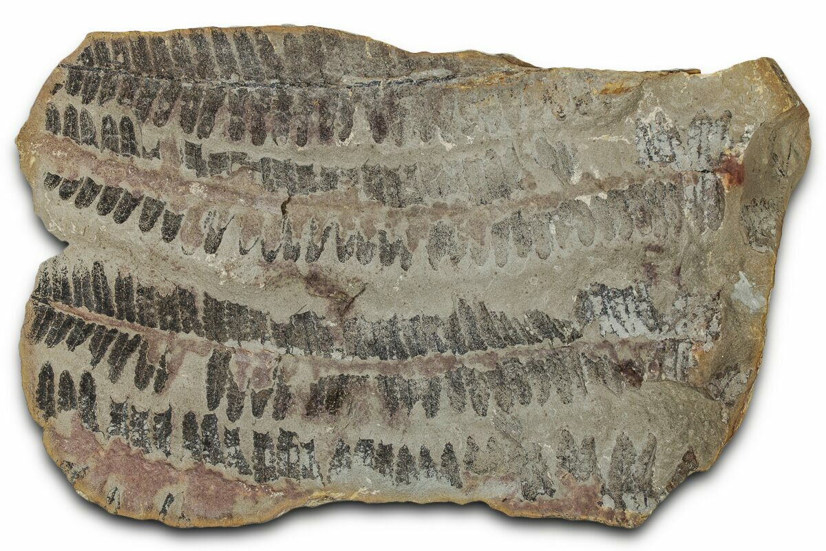 This is a 5.7" fossil fern (Pecopteris sp.) nodule from the Carbondale Formation (Francis Creek Shale) in Braidwood, Illinois. It is preserved inside an ironstone nodule associated with the famous Mazon Creek Lagerstätte. Under magnification the detail of this specimen stands out. Both the positive (convex) and negative (concave) sides of the fossil nodule are included.