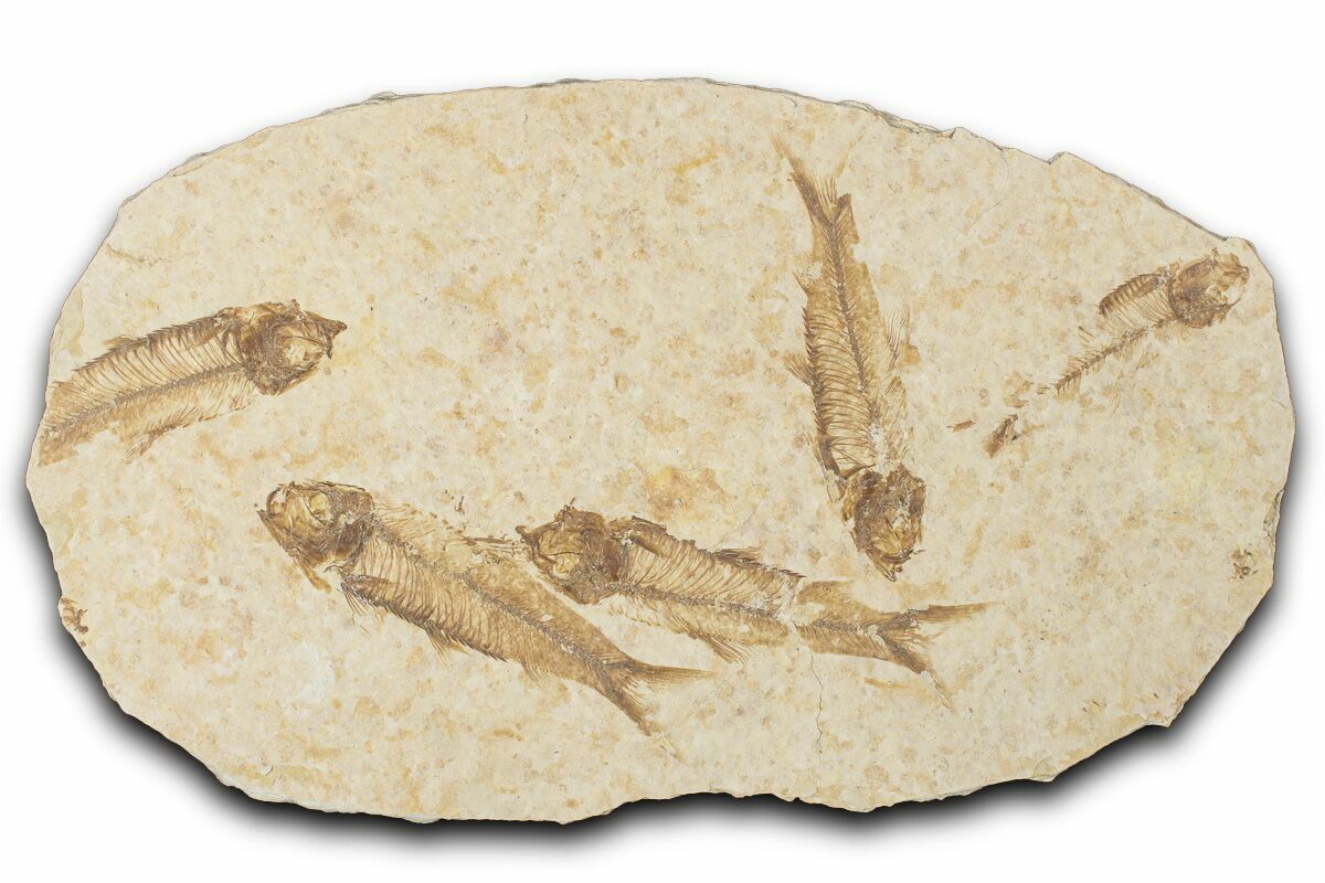 Knightia is an extinct genus of small, schooling, ray-finned fish related to modern herrings and sardines. Abundant in the warm freshwater lakes of the Eocene Green River Formation, they fed on insects, plankton, and tiny fish, while serving as prey for nearly every larger predator in the ecosystem. The most common species, Knightia eocena, reached about 15 cm in length and is celebrated today as the state fossil of Wyoming.
