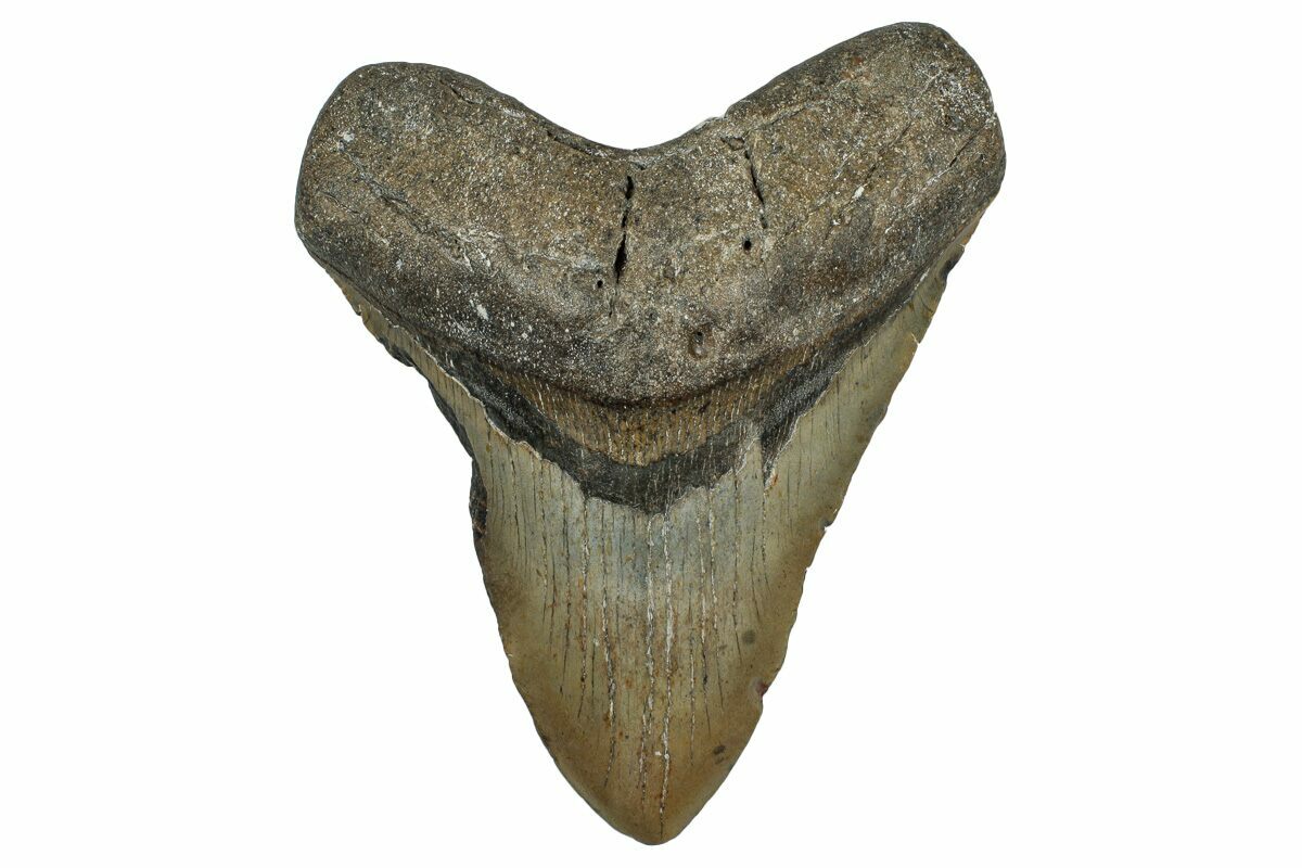 The standard measure for megalodon teeth is slant height, or the longest edge of the tooth. Adult megalodon teeth were typically in the 4 to 5 inch range: teeth over 6 inches are rare and represent super-sized individuals. Only a handful of teeth have ever been found over seven inches.