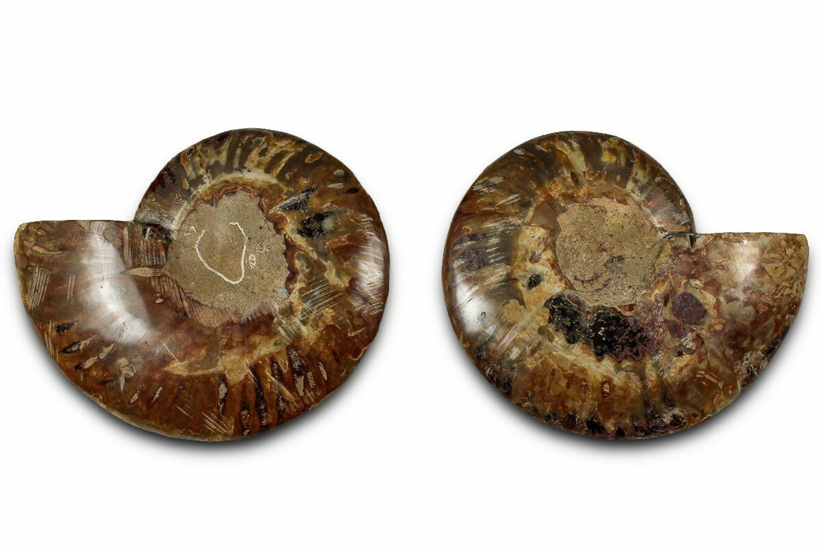 It exhibits gorgeous mineralization within the chambers, each separated by white calcite septa (divisions). This highly polished exotic ammonite makes a superb display piece with tremendous historical appeal.