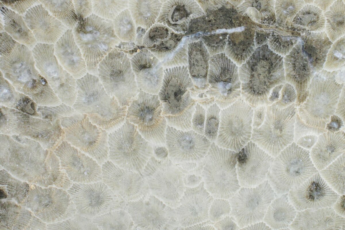 Known locally as "petoskey stones", this fossil coral can be found along the beaches of Lake Michigan and Lake Huron, as well as in rock quarries from Alpena to Traverse City, Michigan. The species is Hexagonaria percarinata, a type of rugose coral that lived during the Middle Devonian period about 350 million years ago. Petoskey stones are the state stone of Michigan.